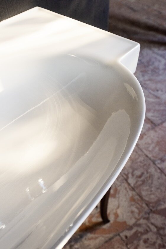 SaphirKeramik – это революция в мире керамических изделий: благодаря его прочности и пластичности стало возможным создание тончайших, но прочных стенок толщиной 4-5 мм, а также изгибов радиусом всего 2-3 мм, сохранив при этом традиционную технологию производства. Благодаря тонкому профилю, изделия из SaphirKeramik не занимают много места, имеют легкий вес и являются экологически безопасными. Исключительная твердость и прочность SaphirKeramik достигается благодаря корунду (AI2O3), бесцветному минералу, известному также под названием сапфир. Проведенные исследования доказывают, что прочность на изгиб этого материала соответствует параметрам стали.