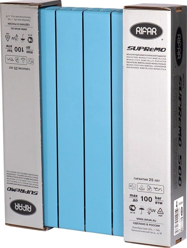 Радиатор биметаллический Rifar SUPReMO 500 6 секций сапфир R S50063/45024