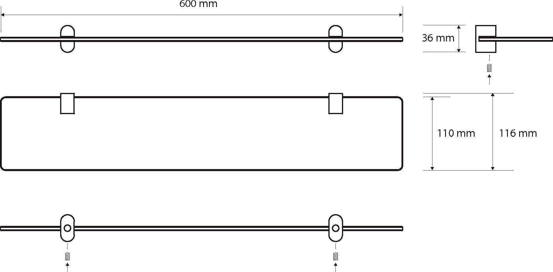 Organic: Стеклянная полка. высота: 41 mm, ширина: 601 mm, глубина: 117 mm