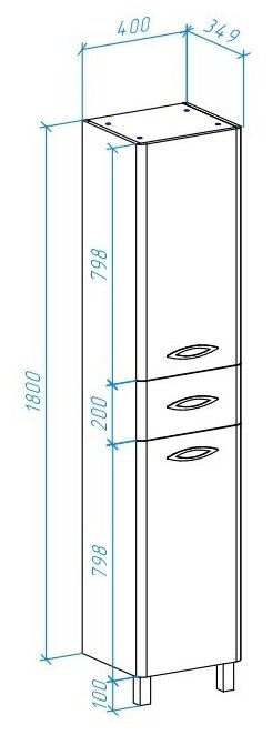 - Размеры (ШхВхГ): 400х1900х349 мм.