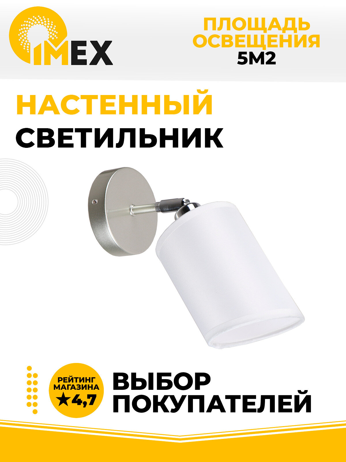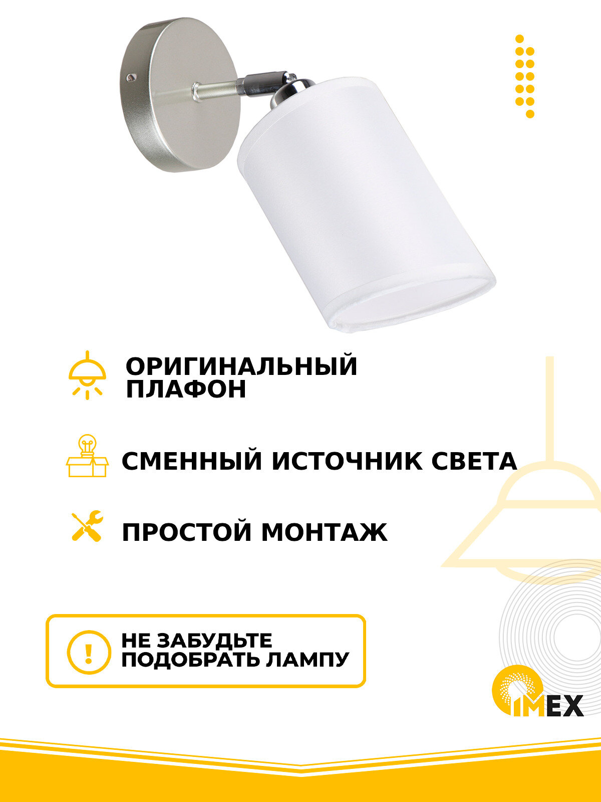 Бра - продукт известной компании Imex (Германия). Имеет максимальную мощность 60 Вт, освещает площадь до 3 кв. м. Отлично подойдет для таких мест, как гостиная, прихожая и коридор, спальня. Впишется в интерьеры следующих стилей: модерн.