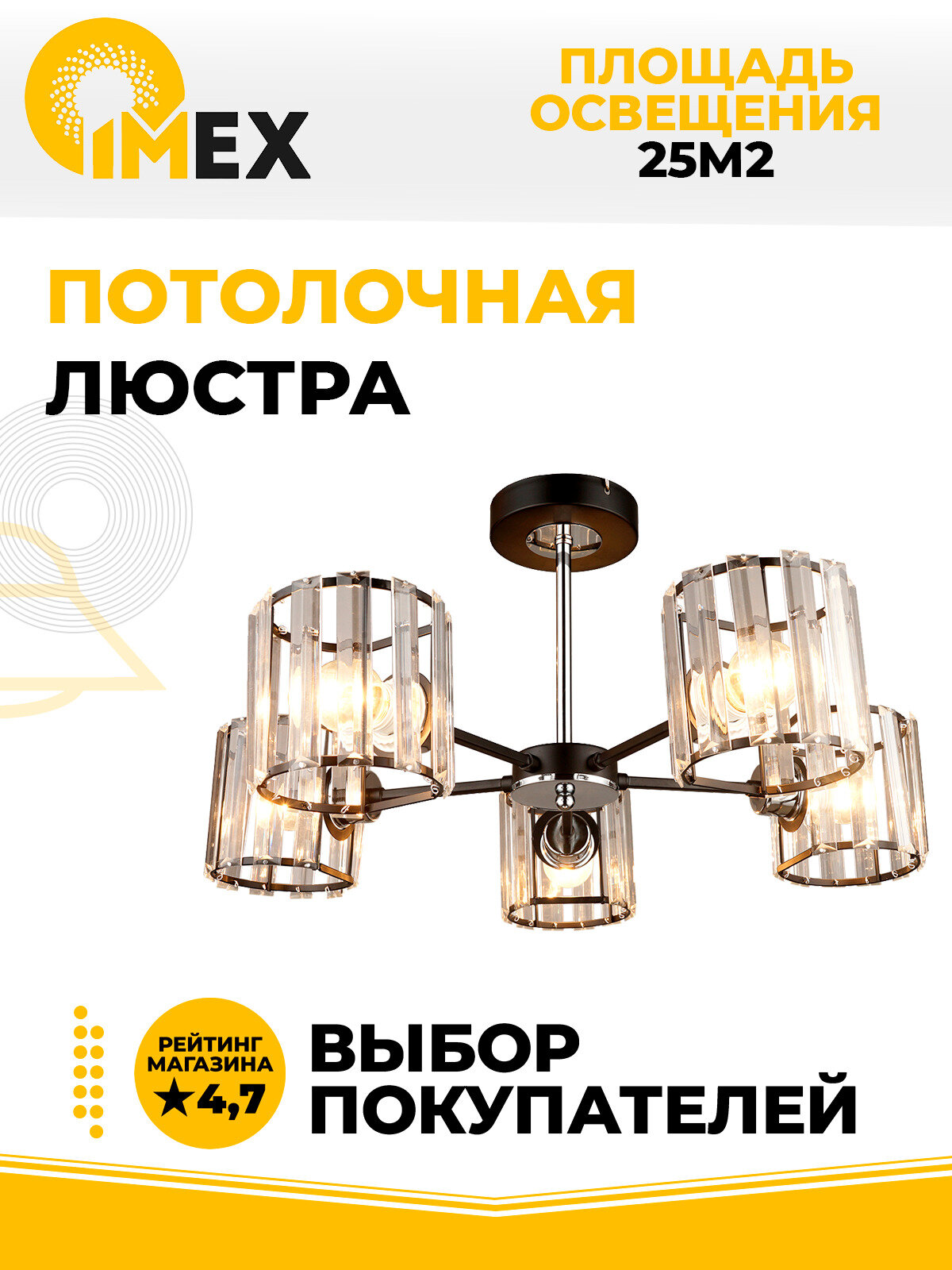 На сегодняшний день товар «Потолочная люстра IMEX MD.4057-5-S BK+CH» можно купить с кешбеком в 2 магазинах: Яндекс.Маркет, Santehnika-room