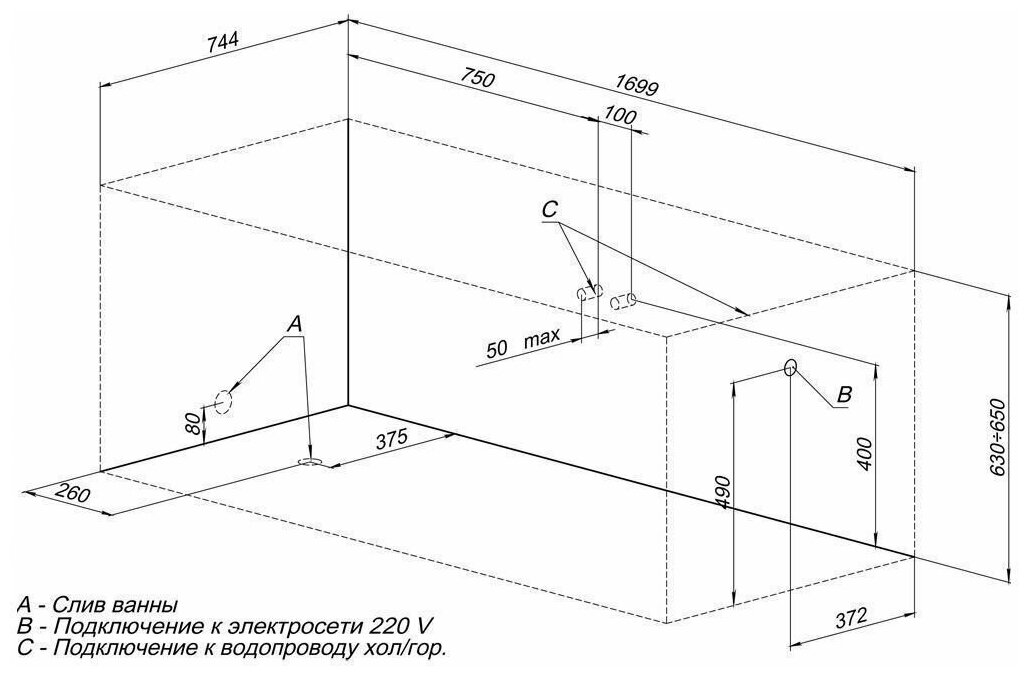 | Диаметр выпуска (отверстия для слива) | 52 |