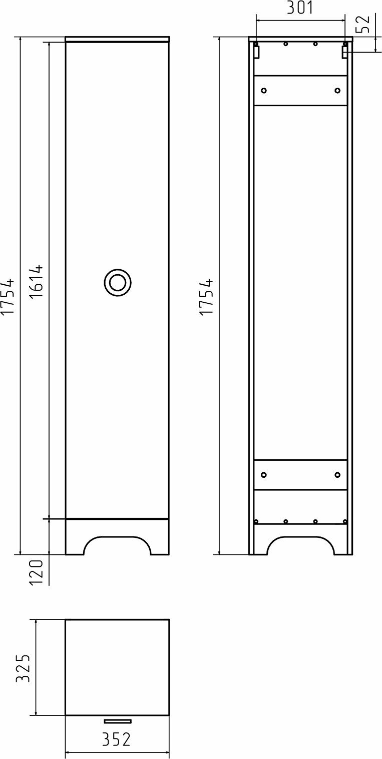 - Цвет: белый. Материал фасада: МДФ. Материал корпуса: ЛДСП. Покрытие корпуса и фасада: эмаль. Габариты (ШхВхГ): 352х1754х325 мм. Цвет ручек: хром. Система хранения: распашная дверца (внутри полки из ЛДСП). Оснащение: петли с доводчиком (плавное и бесшумное закрывание). Ориентация: правосторонняя. Регулируемые по высоте ножки. Монтаж: напольный.