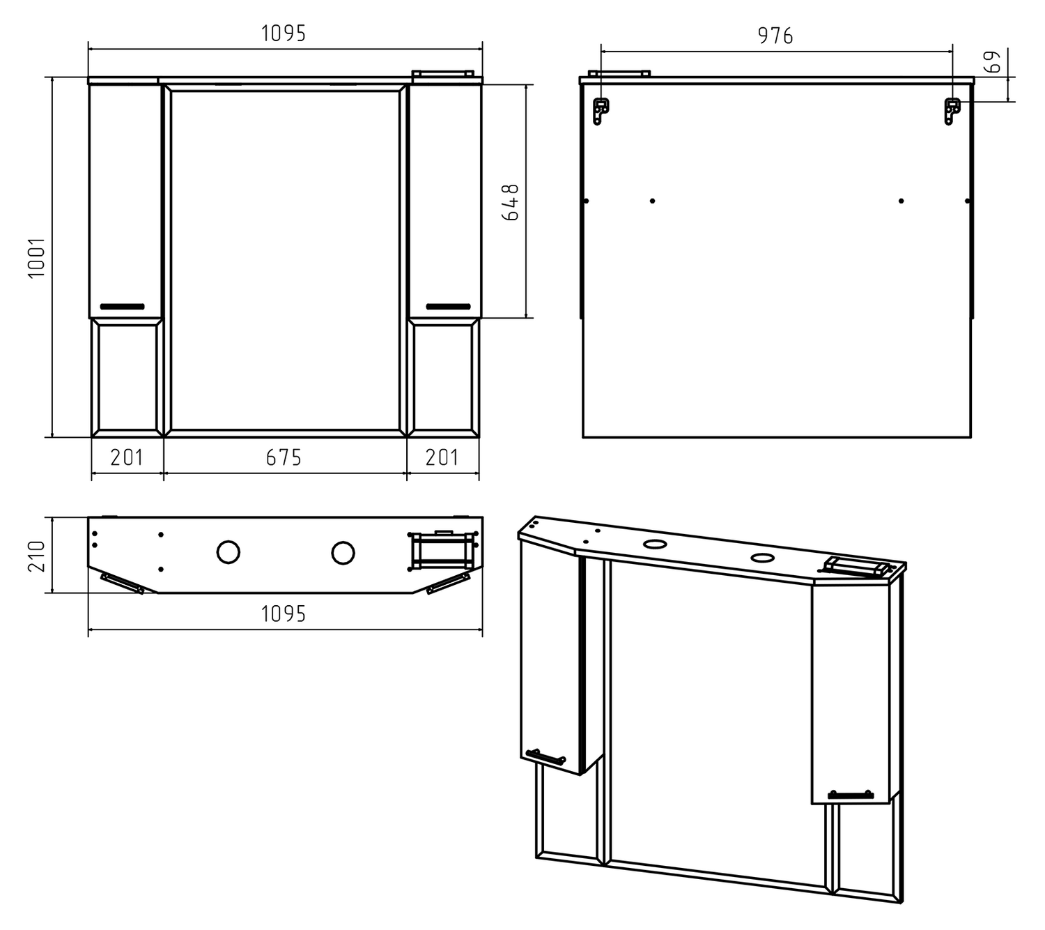 - Размеры (ШхВхГ): 1095х1001х210 мм.