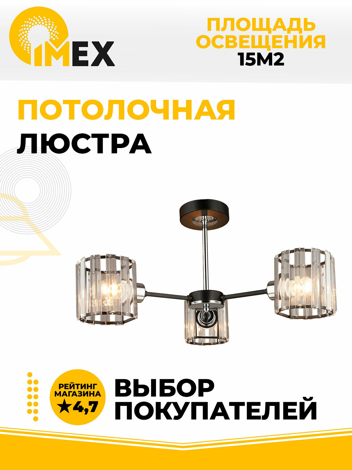 На сегодняшний день товар «Потолочная люстра IMEX MD.4057-3-S BK+CH» можно купить с кешбеком в 3 магазинах: Santehnika-room, donplafon, Яндекс.Маркет