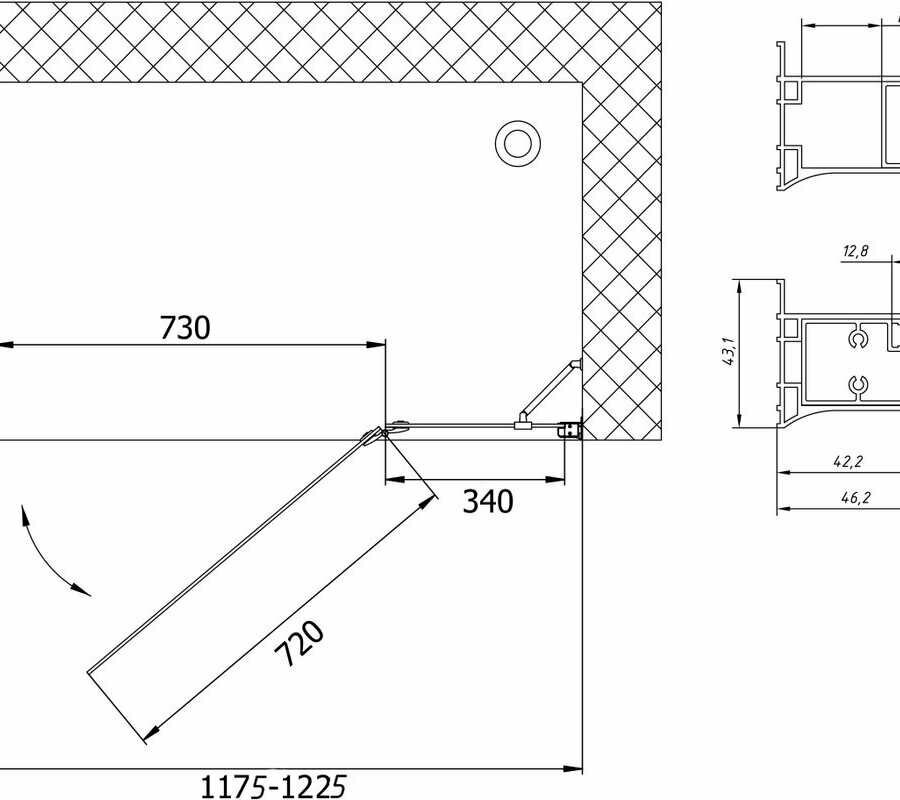 Душевая дверь в нишу Vegas Glass AFP 0120 01 01 R стекло прозрачное 120 AFP 120 01 01 R