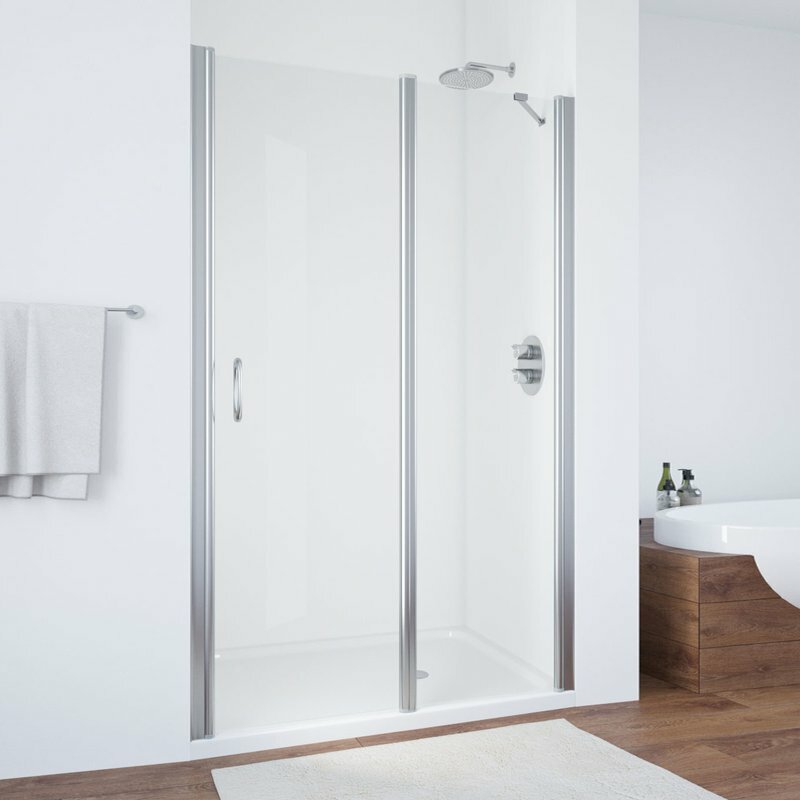 Дверь одностворчатая распашная с неподвижным сигментом. Безопасное прозрачное, шиншилла, бронза, сатин, фея, ретро, флёр-де-лис, жасмин стекло 6 мм. Алюминиевый профиль белого цвета или хром (матовый, глянцевый), бронза, золото. Поддон в комплект не входит. ВНИМАНИЕ! Цена указана за прозрачное стекло, цвет профиля глянцевый хром, стоимость других вариантов стекла и профиля уточняйте у менеджеров.