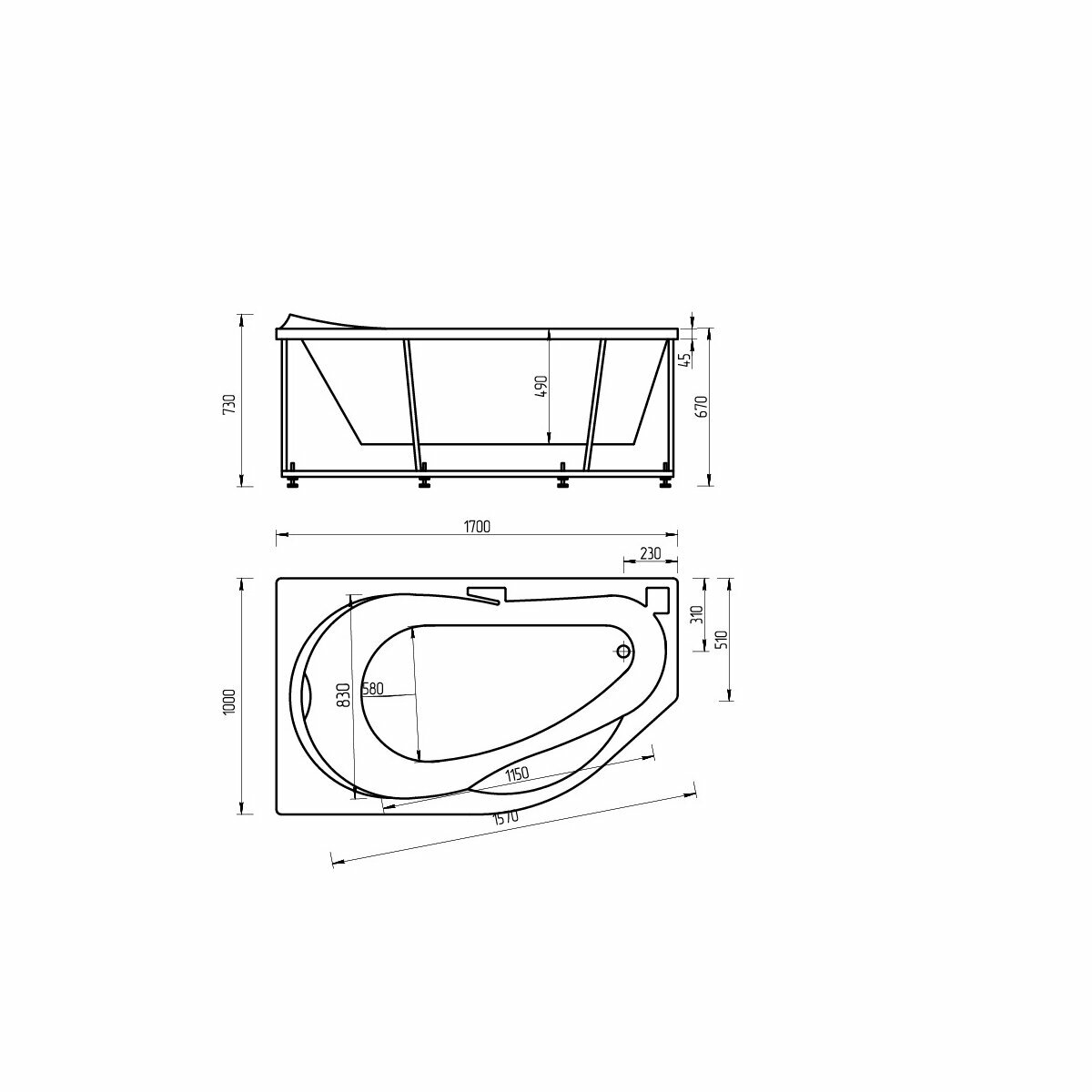 Акриловая ванна Акватек Таурус L с фронтальным экраном TAR170-0000084