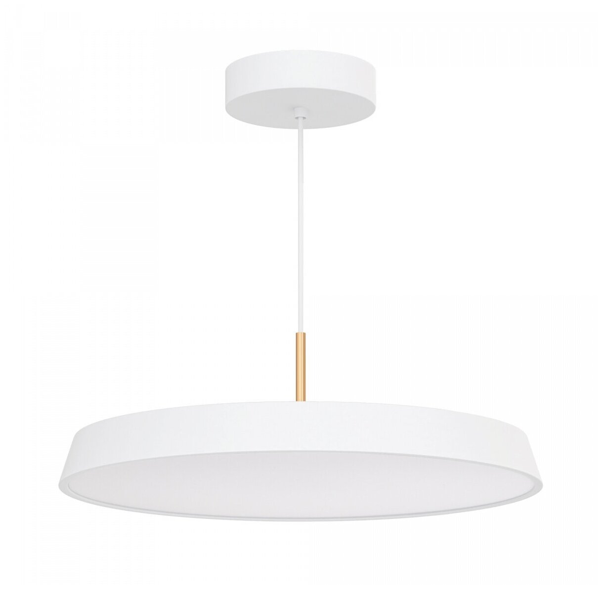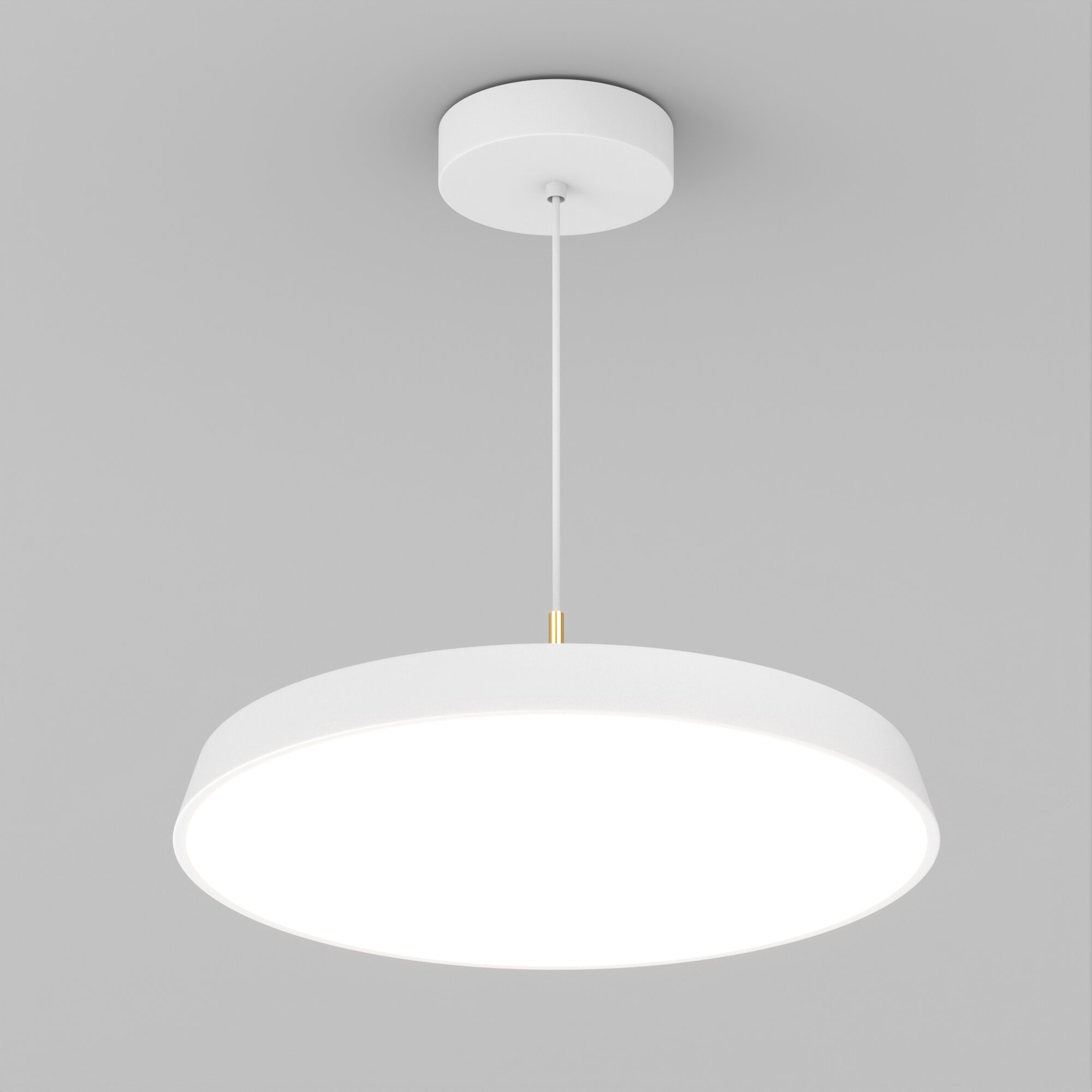 Подвесной светильник SP-ELEGANT-R500-37W Day4000 (WH, 120 deg, 230V) мощностью 37 Вт с дневным белым цветом свечения (4000 К) и индексом цветопередачи CRI>80 для освещения торговых, офисных, жилых и других помещений. Круглый корпус из стали на изящном подвесе длиной 1200 мм с золотистой декоративной вставкой будет уместно смотреться в любом интерьере. Световой поток 3071 лм и широкий угол излучения 120 градусов для создания основного освещения. Коэффициент пульсации менее 1 процента гарантирует комфортное и приятное для глаз освещение без мерцания. Подвесной монтаж и удобная регулировка длины подвеса без специального инструмента. Компактный встроенный драйвер позволяет быстро и безопасно подключить светильник к сети переменного тока 230 В.