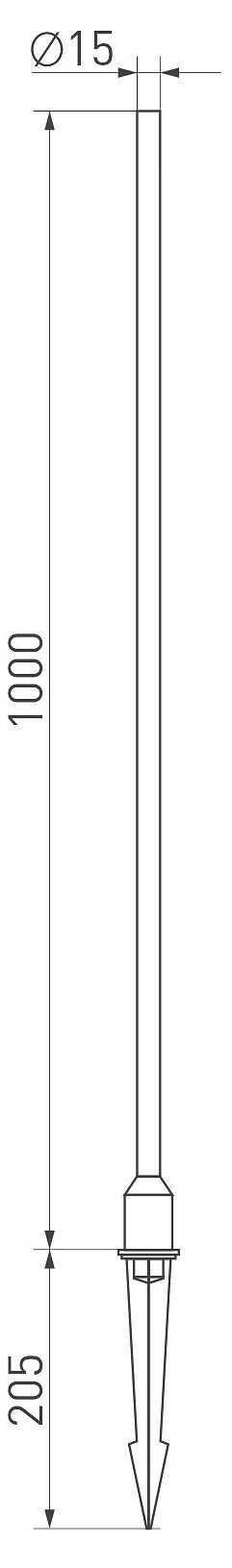 Декоративный ландшафтный светильник. Мощность 3.5 Вт, св. поток 40 лм, 11 лм/Вт, теплый 3000 K, CRI>80, угол 180°, напряжение питания 230 В. Темно-cерый фигурный корпус из алюминия, экран PMMA+PC, степень защиты IP65. Размер: диаметр 15 мм, высота 1000 мм. Монтаж в грунт.