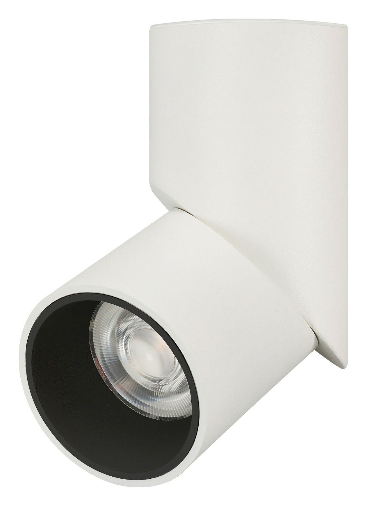 Накладной поворотный светильник 12 Вт. Цвет ТЕПЛЫЙ 3000K, св.поток 850 лм, CRI(Ra)>90, угол свечения 30°, угол регулировки наклона 90°, угол поворота 355°. Корпус круглый, белый алюминий, IP40. Размер DxH 71x177 мм. Питание AC 220-240 В, 12 Вт, драйвер встроенный (DC 300 мА, 28-42 В).