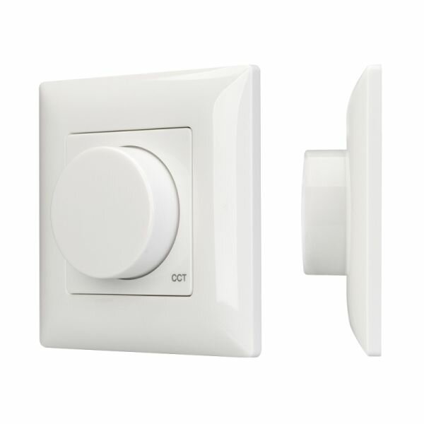 Накладная роторная панель 2.4 ГГц, цвет белый. Материал - пластик. Для управления MIX (CCT) источниками света (ШИМ). Управление цветовой температурой с помощью роторного вращателя. Питание/рабочее напряжение 3VDC от батарейки CR2032. Габариты 86х86х23 мм. Панель совместима с контроллерами и пультами серии SMART.