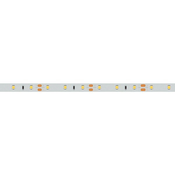 Открытая светодиодная лента шириной 8 мм и мощностью 7.2 Вт/м с очень высоким индексом цветопередачи CRI=95 98. Светодиоды SMD 2835 (60 шт/м) белого теплого цвета свечения (2900–3100 К). Высокая световая эффективность >100 лм/Вт. Напряжение питания 12 В. Минимальный отрезок 50 мм (3 светодиода). Для создания качественного основного освещения и декоративной подсветки интерьеров, рекламных конструкций и витрин.