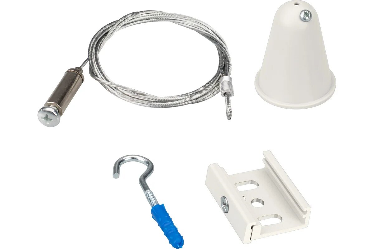 Тросовый подвес с пластиковой чашкой Ø36x47мм для треков 4TR. Длина троса 1.5 м. Цвет белый RAL9010. Выдерживает вес максимум 15 кг. В комплекте трос, чаша, скоба и крюк. Совместим только с шинопроводом серии D3P.