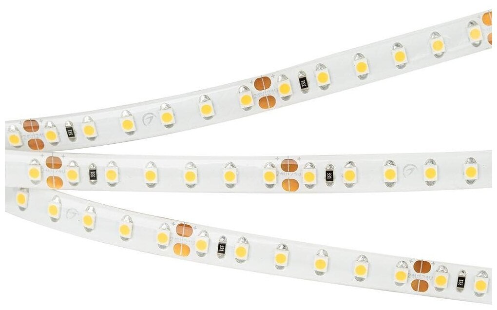 Светодиодная лента RTW-SE-A120, герметичная IP65 (SE-силиконовый верхний слой). Светодиоды 2835, 120 шт/м (600 шт на 5 м), белая плата, ширина 8 мм, скотч 3M. Цвет ТЁПЛЫЙ 3000 K, цветопередача CRI>85, угол 120°. Питание 24V, мощность 9.6 Вт/м (48 Вт на 5 м). Размеры 5000x8x2.2 мм. Мин. отрезок 50 мм, 6 светодиодов. Цена за 1 м.