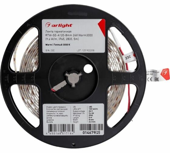 | Номенклатура | Лента герметичная RTW-SE-A120-8mm 24V Warm3000 (9.6 W/m, IP65, 2835, 5m) (ARL, -) |