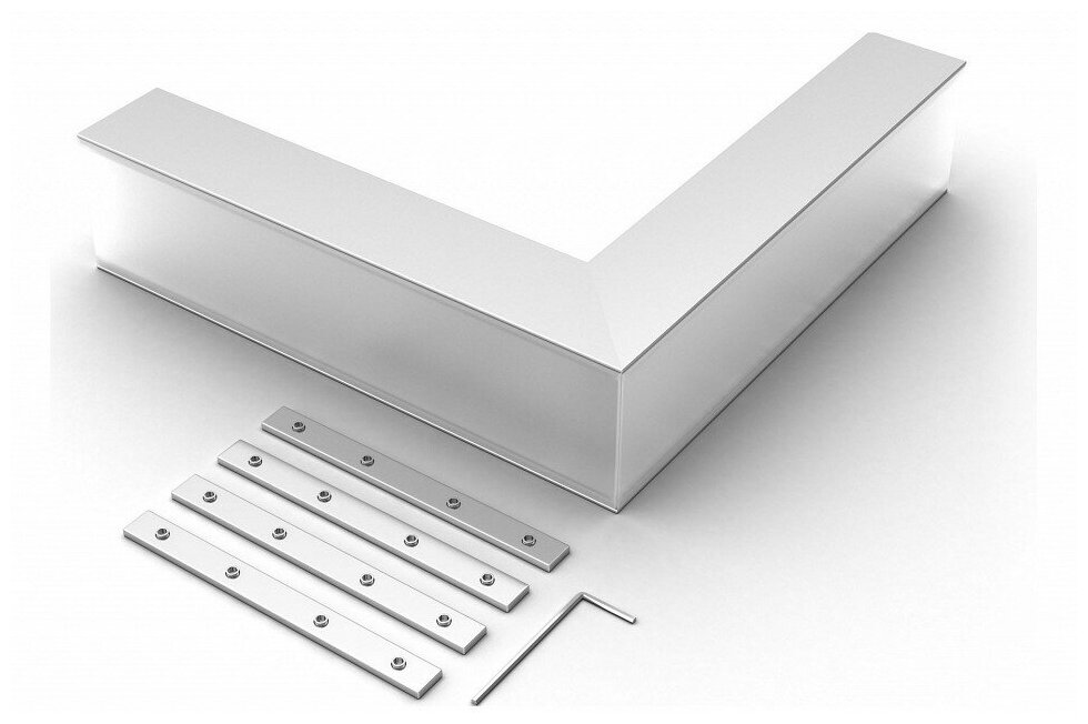 Внешний прямой угол в сборе для соединения двух профилей SL-LINE-5035 под прямым углом 90° в разных плоскостях в комплекте с матовым экраном и соединителями. Экран образует линию по внешней стороне угла. Применятся при изготовлении светильников сложной геометрии. Длина внешней стороны угла 200мм.