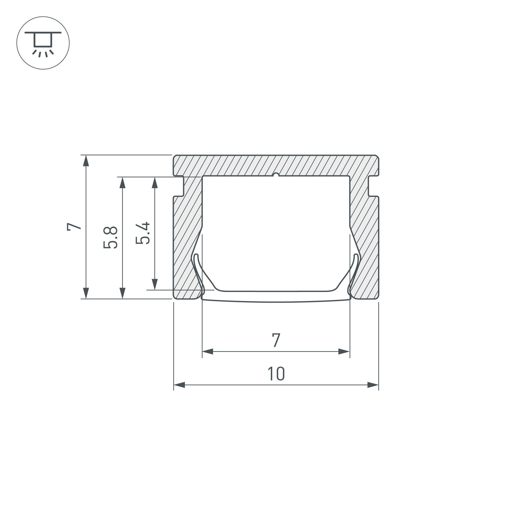 Накладной мини-профиль из анодированного алюминия для подсветки мебели, пазов, ниш и других элементов интерьера. Габаритные размеры профиля составляют 2000 мм в длину, 10 мм в ширину и 7 мм в высоту. Площадка для установки светодиодных лент позволяет использовать ленту шириной до 7 мм и мощностью до 10 Вт/м. Это обеспечивает гибкость в выборе светодиодных лент и создает потрясающие световые решения. Отличное решение для создания современных световых проектов.