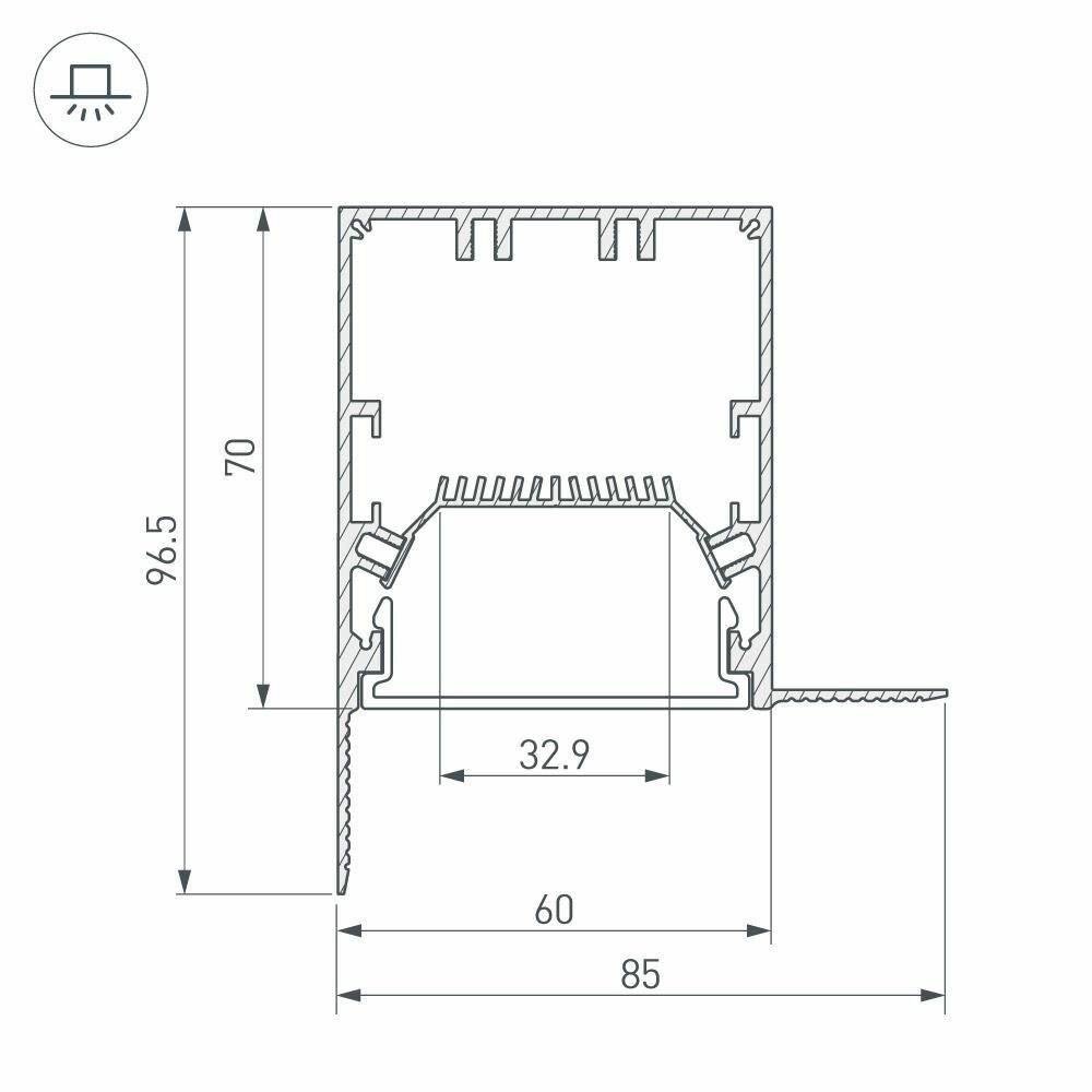 Внешний прямой угол в сборе со скрытым фланцем под строительную отделку для соединения двух профилей SL-LINIA55-FANTOM-EDGE под прямым углом 90° в разных плоскостях в комплекте с матовым экраном и соединителями. Экран образует линию по внешней стороне угла. Применятся при изготовлении светильников сложной геометрии. Длина внешней стороны угла 200мм.