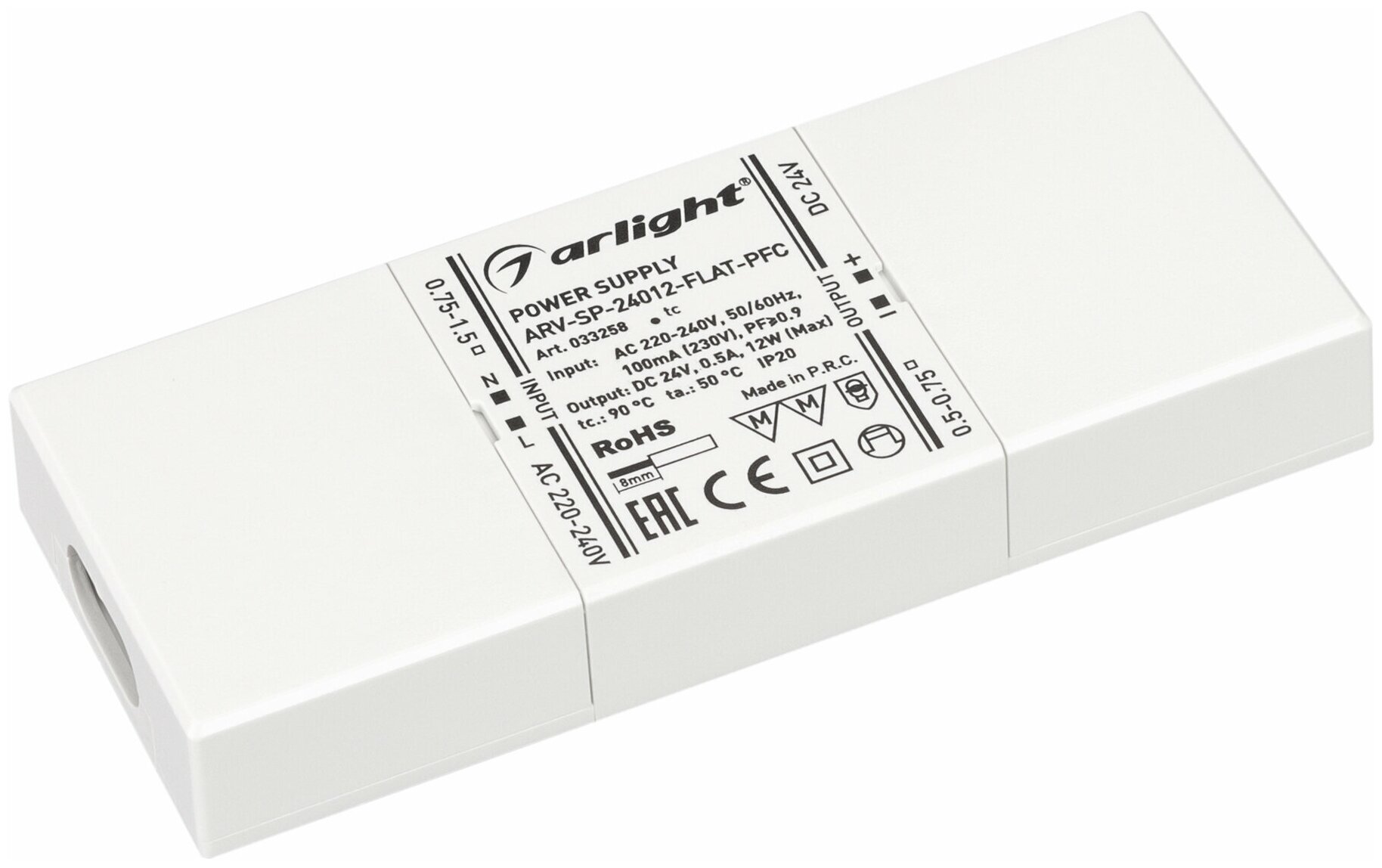Блок питания Arlight ARV-SP-24012-FLAT-PFC 24V 12W IP20 05A / 033258