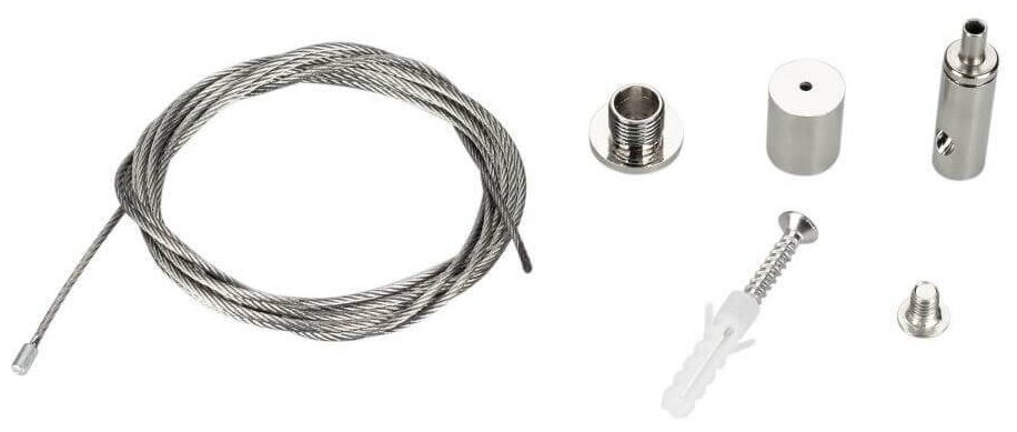 Тросовый подвес для подвесного монтажа магнитных треков MAG-TRACK-4563 и MAG-TRACK-4592. Длина троса 4 м. Выдерживает вес максимум 15 кг. В комплекте тросовый держатель, трос, фиксатор для троса.