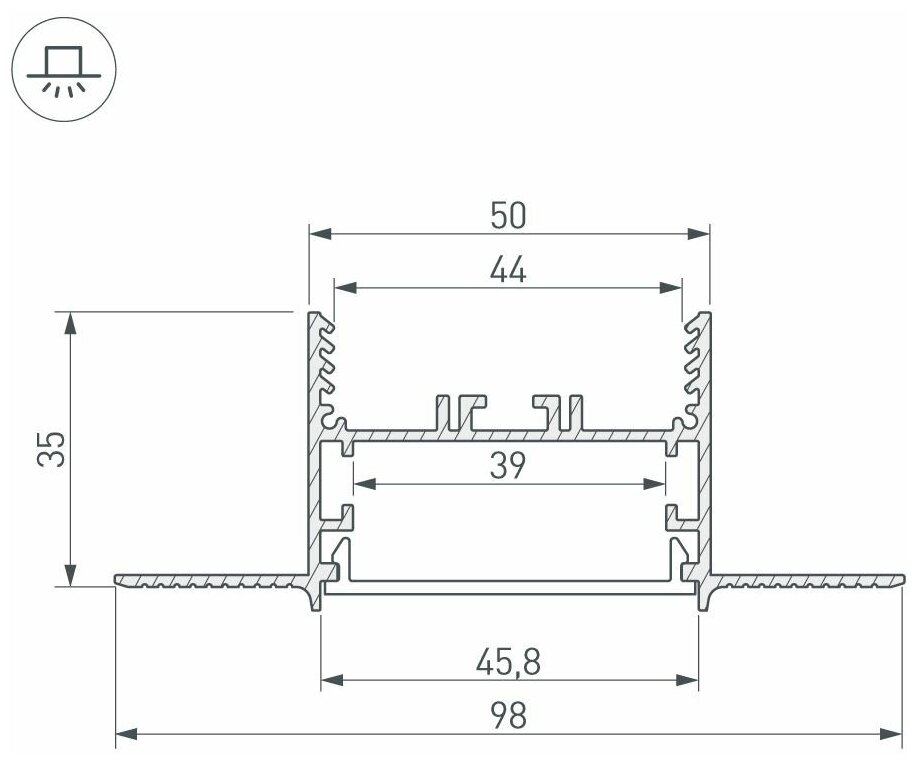 Прямой угол в сборе со скрытым фланцем под строительную отделку для соединения двух профилей SL-LINIA45-FANTOM под прямым углом 90° в одной плоскости в комплекте с матовым экраном и соединителями. Экран образует линию на плоскости. Применятся при изготовлении светильников сложной геометрии. Длина внешней стороны угла 200мм.