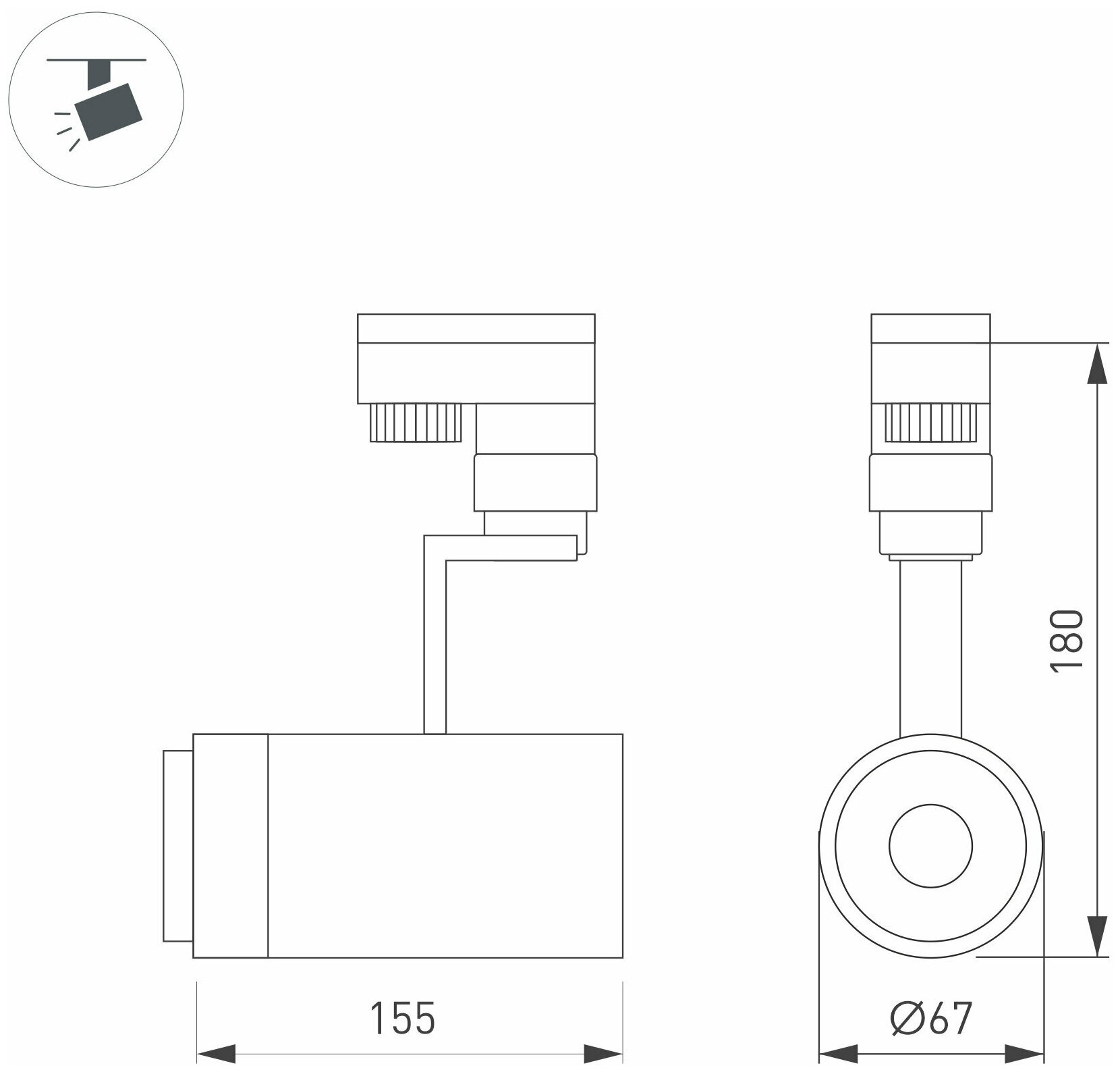 Светильник подвесной для треков/шин 2 провода, 10Вт. Цвет свечения ТЕПЛЫЙ 3000K, световой поток 800-1000лм, регулируемый угол 20-60°, CRI>90. Корпус круглый, металл, цвет черный. Размеры DxHxL Ø67x180x155мм. Входное напряжение AC220-240V, мощность 10Вт. Драйвер встроенный (27-38V, 260mA).