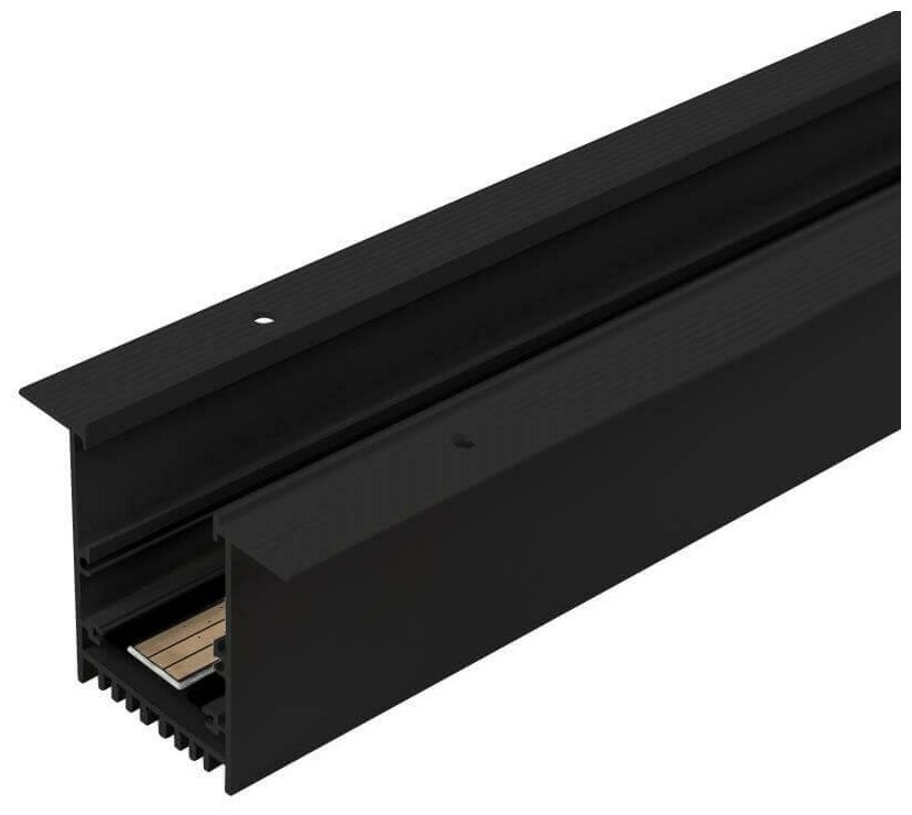 Встраиваемый магнитный трек с фланцем, длина 1040мм. DC24V. Материал алюминий, цвет черный. Две заглушки в комплекте. Размер ДxШxВ: 1000x45x60мм. Размер (с учетом заглушек и фланцев) ДxШxВ: 1040x75x60мм. Установка в отверстие ДхШхВ 1015x50x70мм.