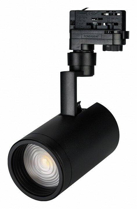 Светильник подвесной для треков/шин 4 провода, 20Вт. Цвет свечения ДНЕВНОЙ 4000K, световой поток 1600-2000лм, регулируемый угол 20-60°, CRI>90. Корпус круглый, металл, цвет черный, IP20. Размеры DxHxL Ø88x200x162мм. Входное напряжение AC220-240V, мощность 20Вт. Драйвер встроенный (30-42V, 500mA).