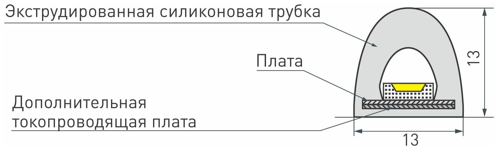 Герметичная лента в силиконовой трубке (IP68) шириной 13 мм. Предназначена для декоративной подсветки и освещения саун, бань, ванных комнат. Подходит для оформления рекламы, возможно использование на улице. RGB-светодиоды SMD 2835 (180 шт/м), напряжение питания 24 В, мощность 14.4 Вт/м. Минимальный отрезок 33.3 мм (6 светодиодов). В комплекте: заглушка кабельная (2 шт), заглушка глухая (2 шт), клипса монтажная силиконовая (10 шт). Диапазон рабочих температур от −30 до +80 °С при длительной эксплуатации и от −30 до +100 °С при кратковременной.