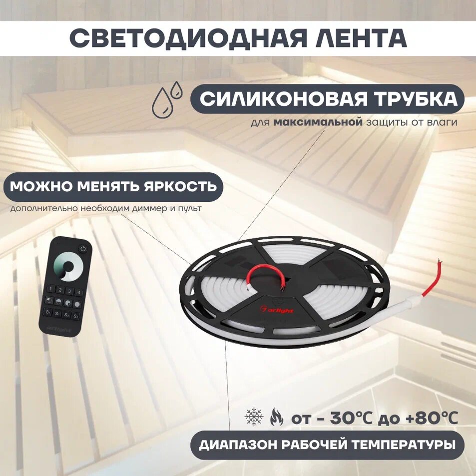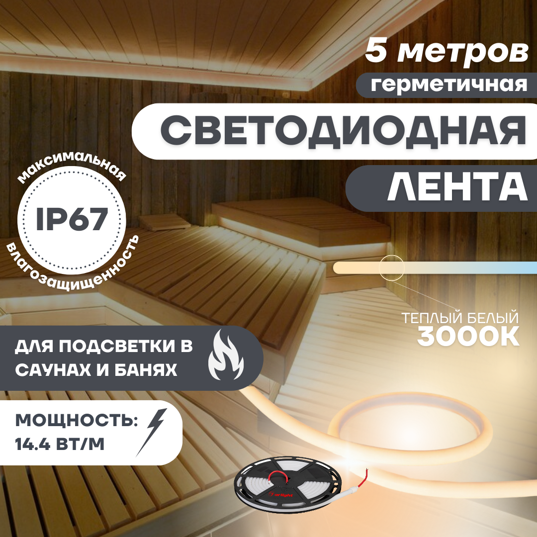 Гибкий неон Arlight 144W/m 180LED/m 2835SMD теплый белый 5M 024289(1)