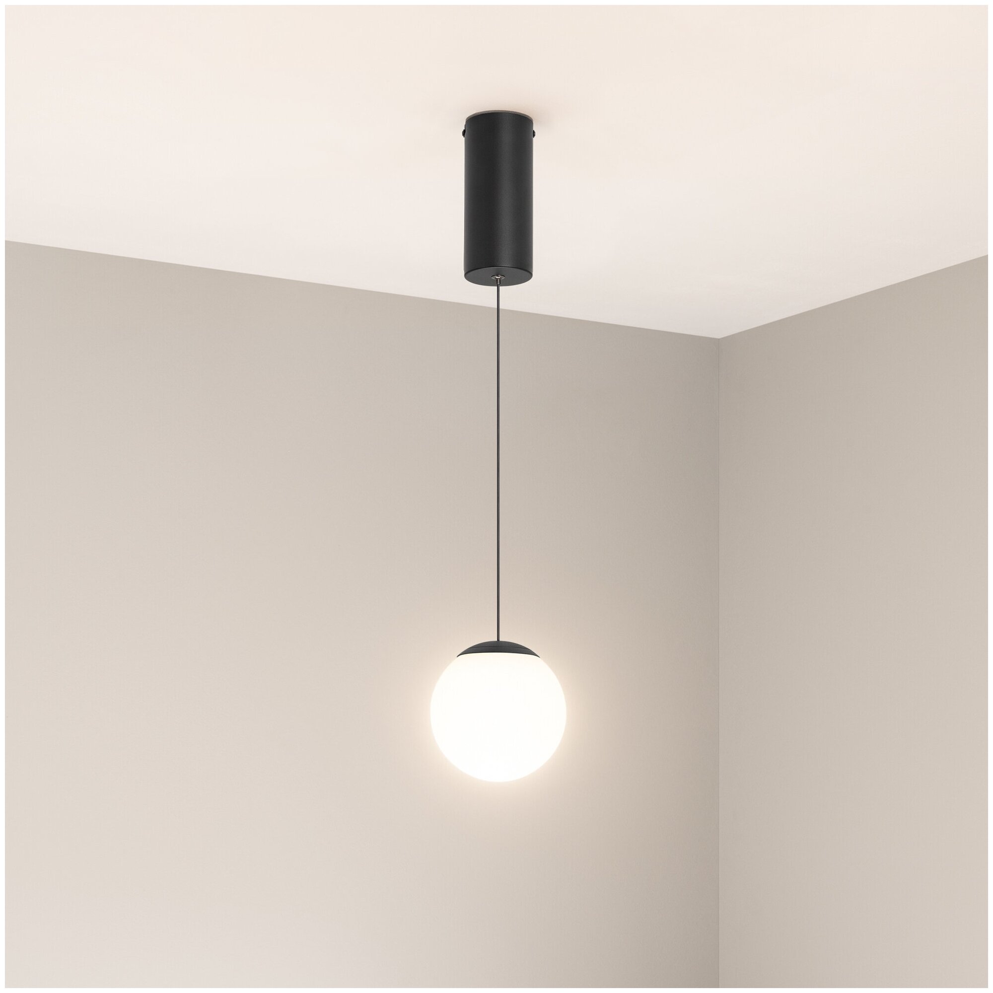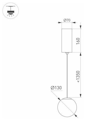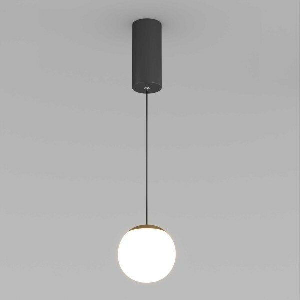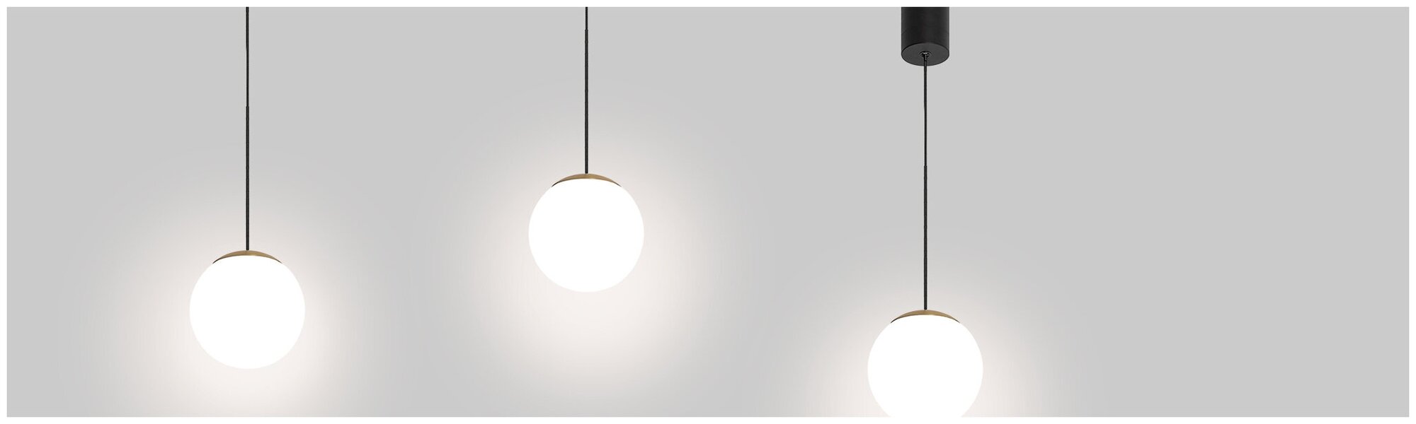 Подвесной светильник. Мощность 10 Вт, св. поток 720 лм, 70 лм/Вт, дневной 4000 K, CRI>90, угол 250°, напряжение питания 230 В. Черно-золотой круглый корпус из алюминия и стали, рассеиватель стекло, степень защиты IP20. Размер: диаметр 130 мм, размер чаши: диаметр 70 мм, высота 160 мм. Монтаж подвесной, длина подвеса 1350 мм. Драйвер 6-14 В, 600 мА, пульсация