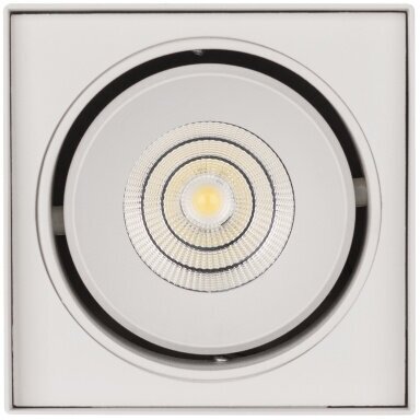 Минимальное количество для заказа 100 шт. Накладной интерьерный светильник. Мощность 11 Вт, св. поток 850 лм, 77 лм/Вт, дневной 4000 K, CRI>90, угол 40°, регулируемое направление луча 30°, напряжение питания 230 В. Белый квадратный корпус из алюминия, степень защиты IP20. Размер: длина 100 мм, ширина 100 мм, высота 135 мм. Монтаж накладной. Драйвер 18-24 В, 500 мА, пульсация