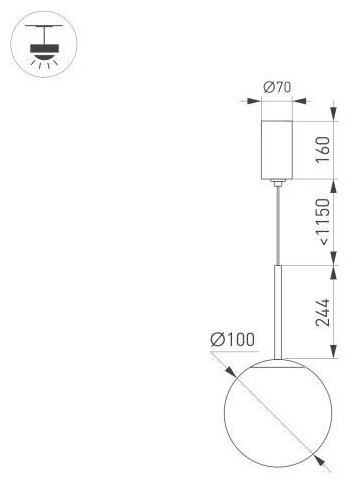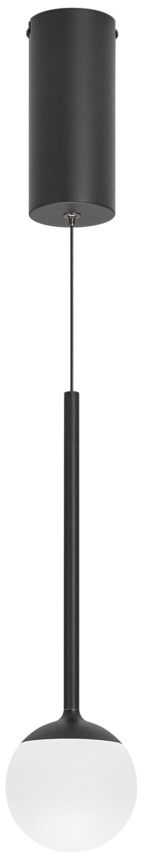 Подвесной светильник. Мощность 8 Вт, св. поток 620 лм, 80 лм/Вт, дневной 4000 K, CRI>90, угол 180°, напряжение питания 230 В. Черный круглый корпус из алюминия и стали, рассеиватель акрил, степень защиты IP20. Размер: диаметр 100 мм, высота ножки 244 мм, высота с плафоном 351 мм, размер чаши: диаметр 70 мм, высота 160 мм. Монтаж подвесной, длина подвеса 1150 мм. Драйвер 13-24 В, 300 мА, пульсация