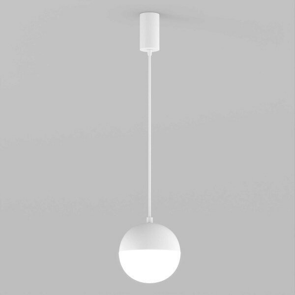 Подвесной светильник. Мощность 11 Вт, св. поток 960 лм, 80 лм/Вт, дневной 4000 K, CRI>90, угол 170°, напряжение питания 230 В. Белый корпус из алюминия, материал плафона стекло, степень защиты IP20. Размер: диаметр 150 мм, длина подвеса 1500 мм. Габариты чаши Ø50x95 мм. Монтаж подвесной, длина подвеса регулируемая. Драйвер 28-42 В, 250 мА, пульсация