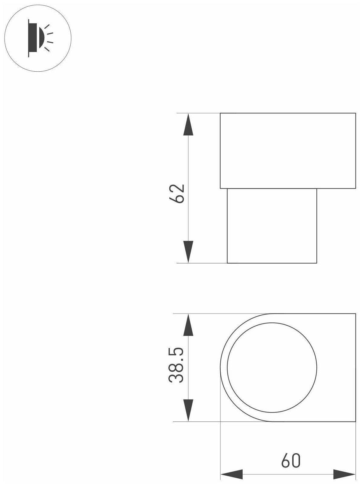 Настенный светильник со свечением в верхнюю или нижнюю полусферу. Мощность 3 Вт, св. поток 175 лм, 55 лм/Вт, дневной 4000 K, CRI>90, угол 40°, напряжение питания 230 В. Черный фигурный корпус из алюминия, степень защиты IP20. Размер: длина 60 мм, ширина 38,5 мм, высота 62 мм. Монтаж накладной. Драйвер 1,8-4 В, 700 мА, пульсация
