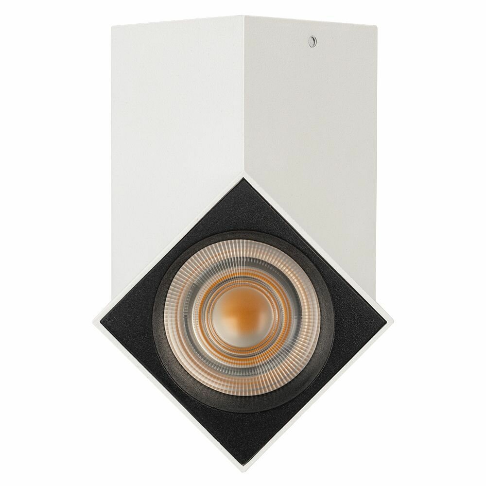 Накладной поворотный светильник 12 Вт. Цвет ТЕПЛЫЙ 3000K, св.поток 1000лм, CRI(Ra)>90, угол свечения 30°, угол регулировки наклона 90°, угол поворота 355°. Корпус прямоугольный, белый алюминий, IP40. Размер LxWxH 60x60x178мм. Питание AC 220-240 В, 12 Вт, драйвер встроенный (DC 300мА, 28-42В).