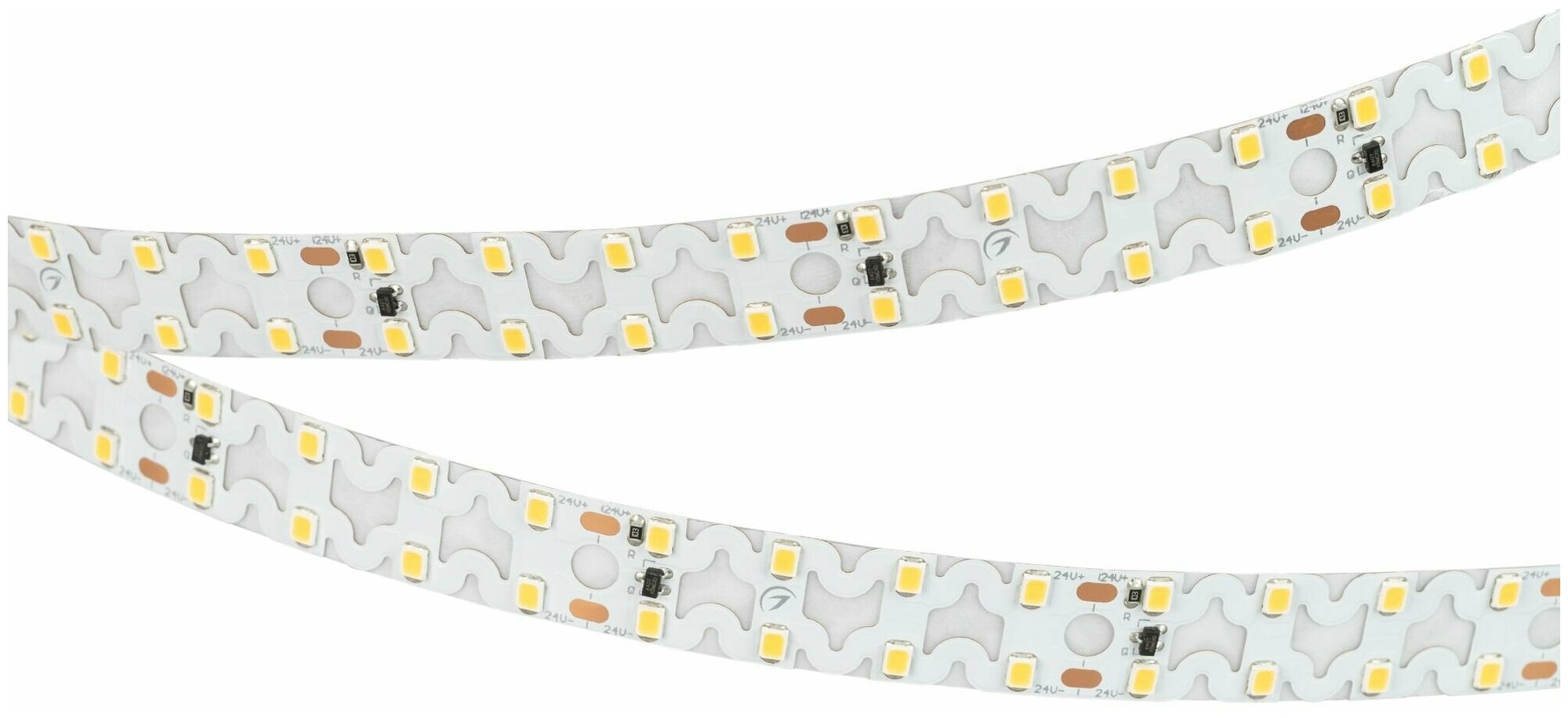 Гибкая лента с фигурной платой в форме волны, легко изгибается на плоскости. Светодиоды smd 2835, 160шт/м (800шт на 5м), белая плата 15 мм, скотч 3М. Цвет ДНЕВНОЙ 3800-4200K. Питание 24V, мощность 19.2 Вт/м (96 Вт на 5м), угол 120°, цветопередача CRI>80. Размеры 5000х15х1.7 мм. Мин.отрезок 50мм, 8 светодиодов. Цена за 1м.