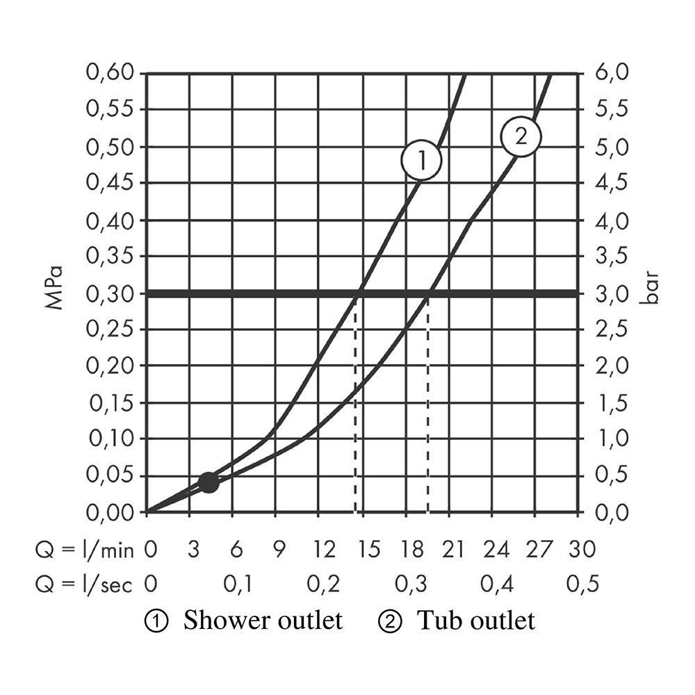 - Расход воды изливом на ванны при 3 барах: 19,4 л/мин.