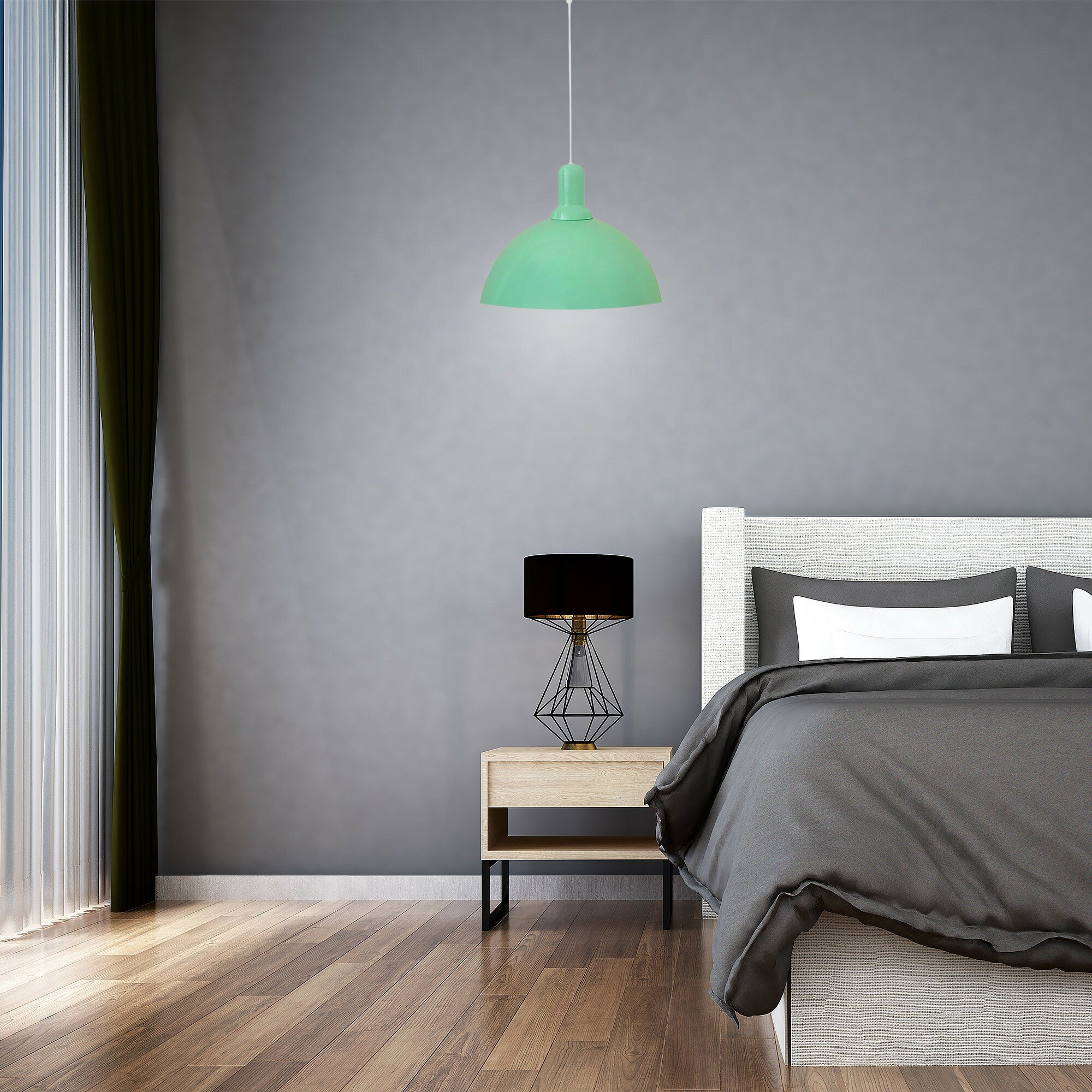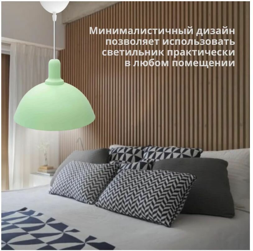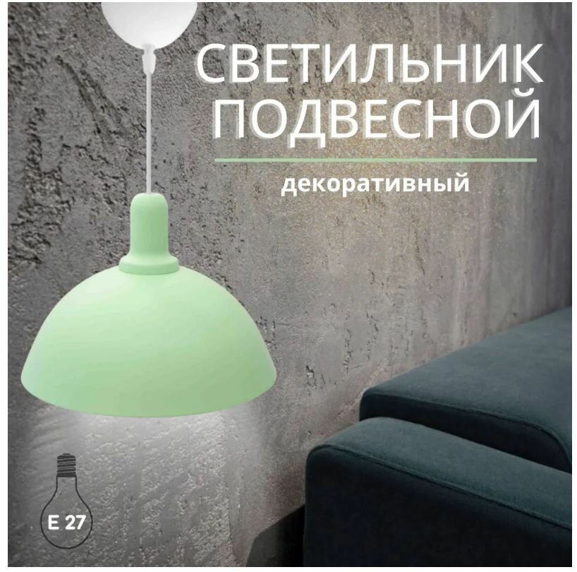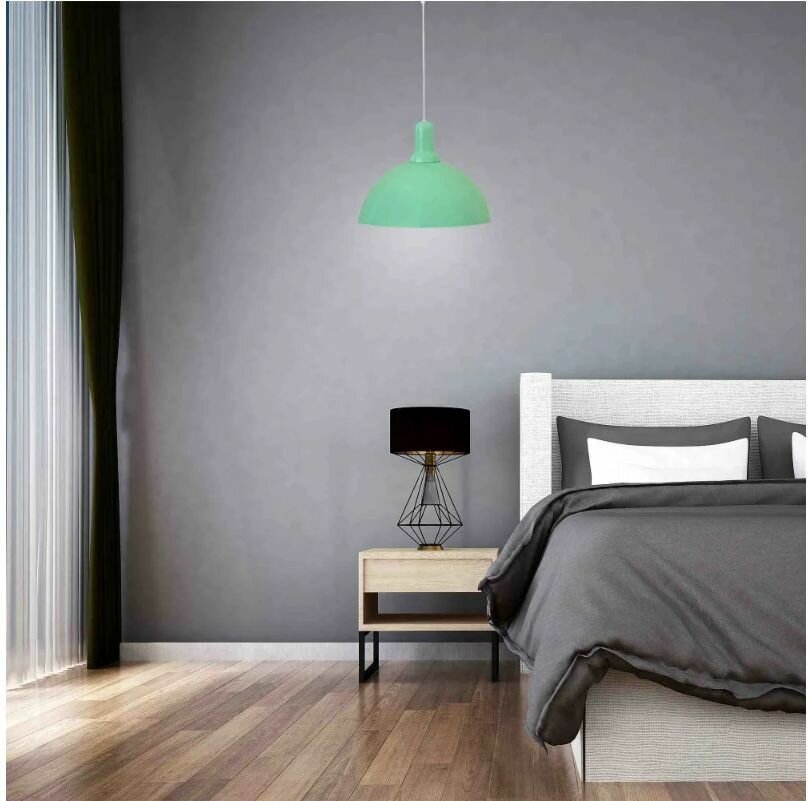Светильник декоративный подвесной используется как основной источник освещения для дома или любого пространства, где требуется подчеркнуть оригинальность интерьера. Минималистичный дизайн светильника позволяет использовать его практически в любом помещении. Идеально подойдет для кухни, гостиной, детской комнаты, спальни, а также отлично будет смотреться в фотостудии, офисе, кафе и ресторане. Металлический корпус мятного цвета имеет размеры Ø250х110 мм. Длина белого шнура 600 мм, регулируется при монтаже в зависимости от высоты потолков. Тип крепления – подвесной, под крючок. В светильник можно установить лампу накаливания или люминесцентную лампу с патроном Е27 мощностью до 15 Вт (в комплект не входит). Для низкого энергопотребления мы рекомендуем использовать светодиодную лампочку. Светильник предназначен для работы в сети с номинальным напряжением 220В. Степень защиты от пыли и влаги IP20.