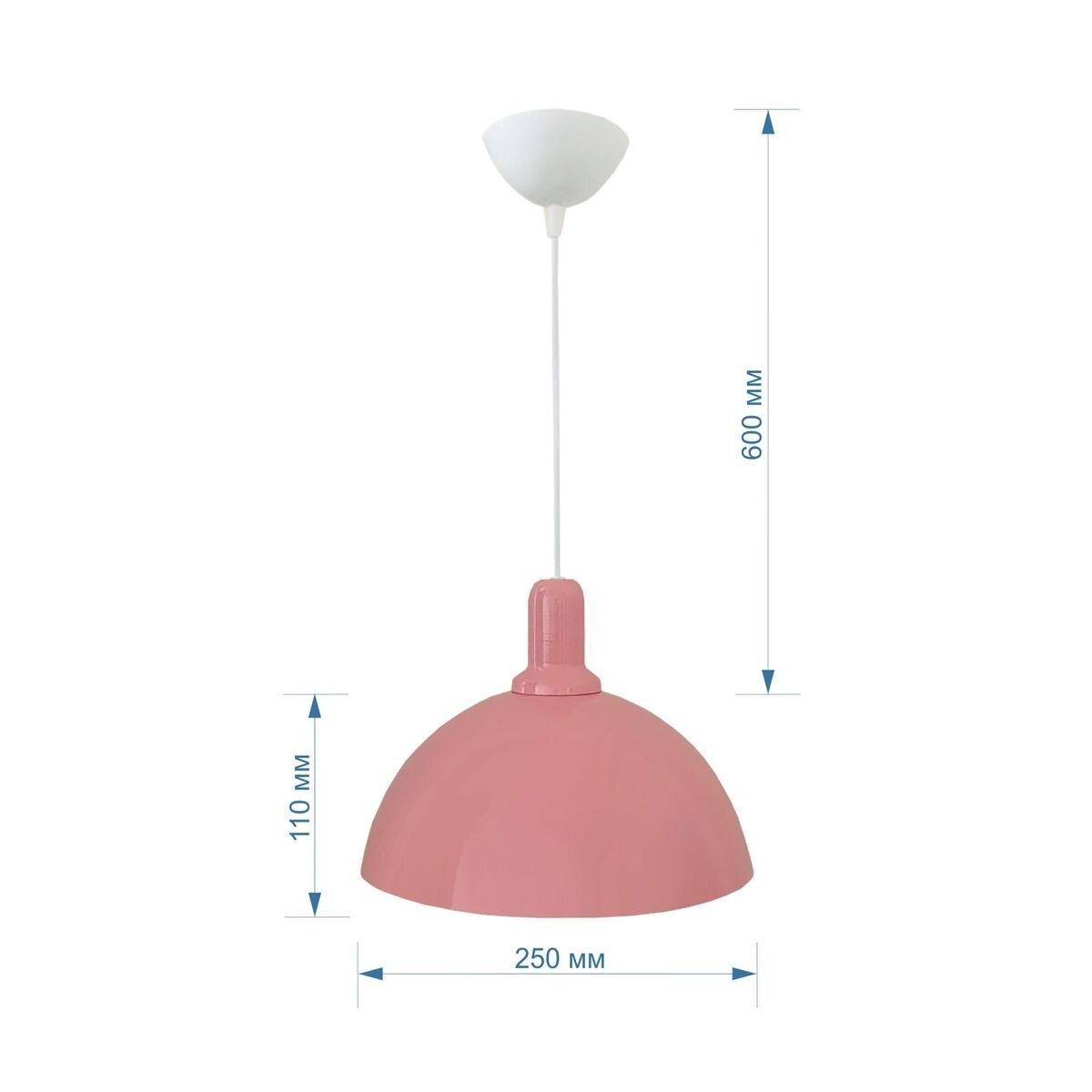 Декоративный подвесной светильник используется как основной источник освещения для дома или любого пространства, где требуется подчеркнуть оригинальность интерьера. Минималистичный дизайн позволяет использовать его практически в любом помещении. Идеально подойдет для кухни, гостиной, детской комнаты, спальни, а также отлично будет смотреться в фотостудии, офисе, кафе и ресторане. Металлический корпус розового цвета имеет размеры 250х110 мм. Длина белого шнура 600 мм, регулируется при монтаже в зависимости от высоты потолков. Тип крепления - подвесной, под крючок. В светильник можно установить лампу накаливания или люминесцентную лампу с патроном Е27 (в комплект не входит). Для низкого энергопотребления рекомендуется использовать светодиодную лампочку. Прибор предназначен для работы в сети с номинальным напряжением 220В. Степень защиты от пыли и влаги IP20.