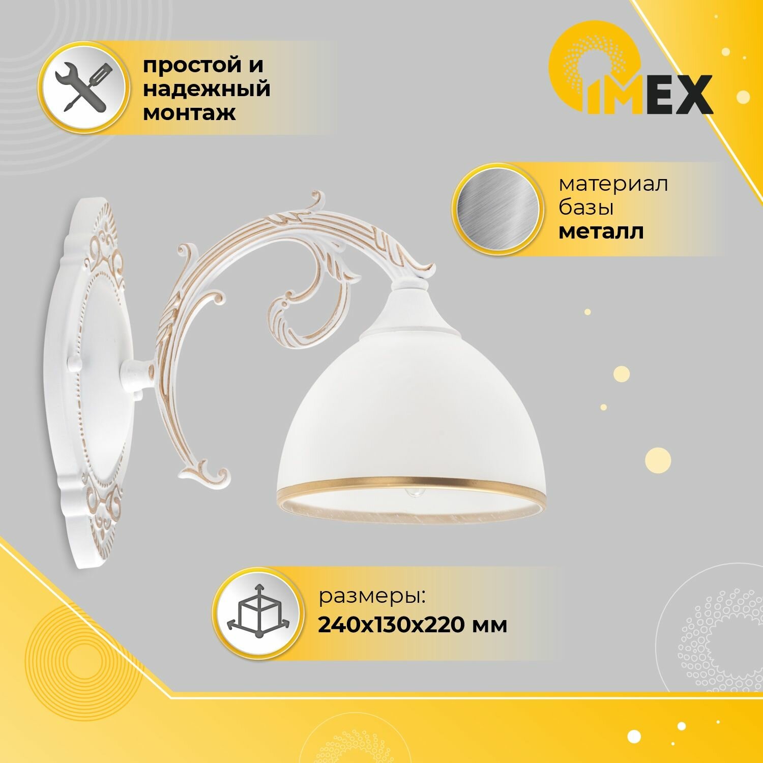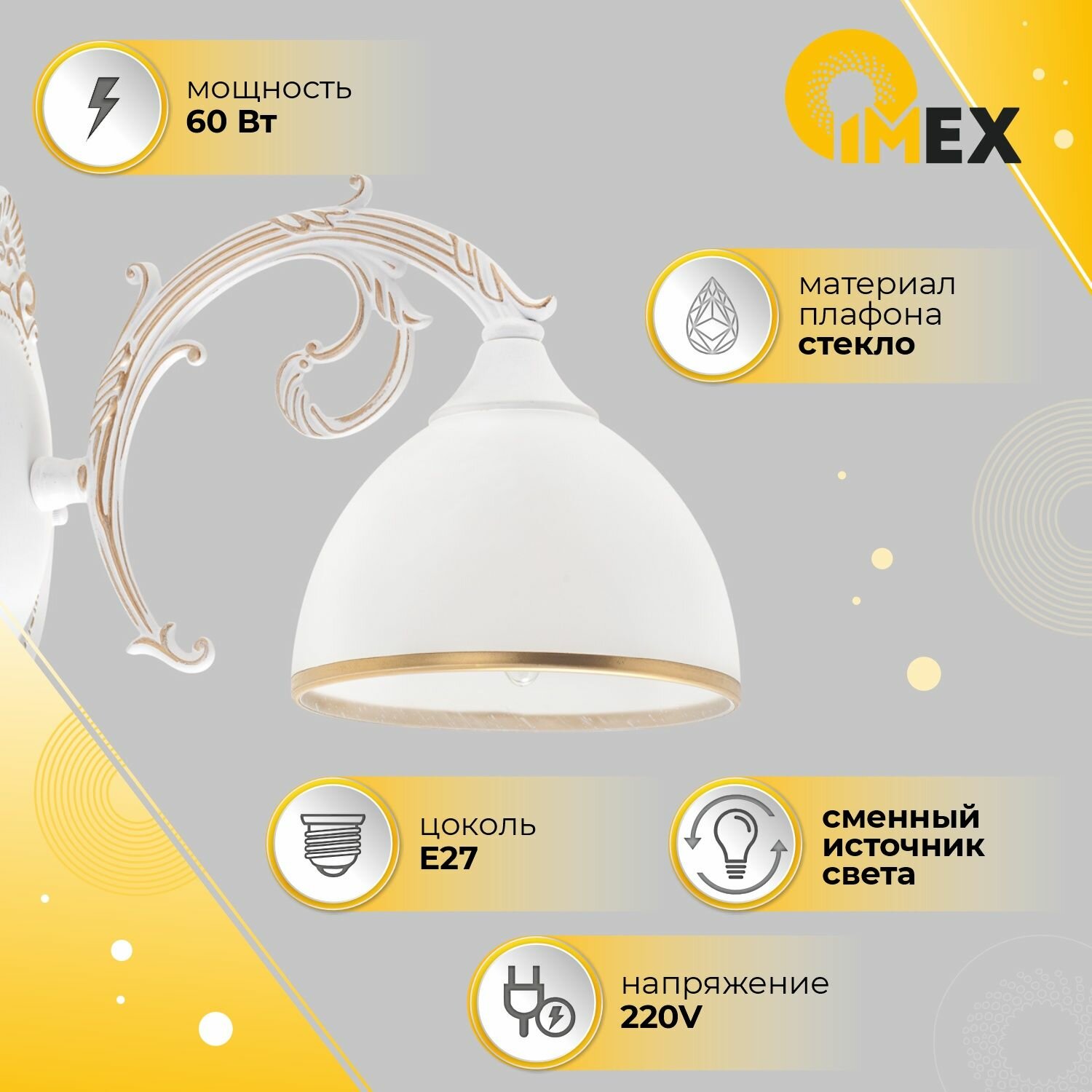 Бра - продукт известной компании Imex (Германия). Имеет максимальную мощность 60 Вт, освещает площадь до 3 кв. м. Отлично подойдет для таких мест, как гостиная, прихожая и коридор, спальня. Впишется в интерьеры следующих стилей: классический.