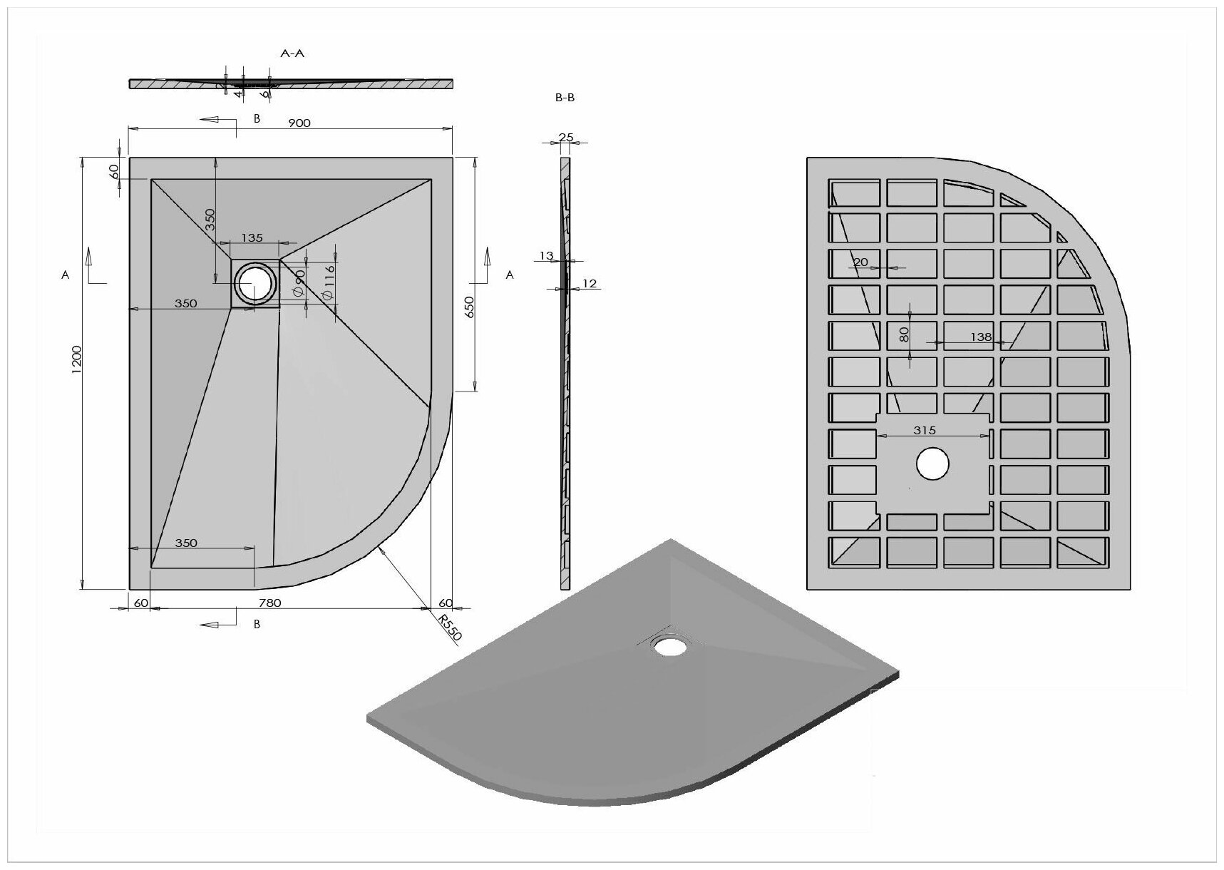 Материал: из искусственного камня. Форма: четверть круга. Цвет: матовый белый. Ширина, мм: 1200. Глубина, мм: 900. Высота, мм: 25. Размер: 1200x900L. Поддон комплектуется сифоном с гидрозатвором – VSPH-D132, квадратная крышка из нержавеющей стали. Сифон приобретается отдельно.