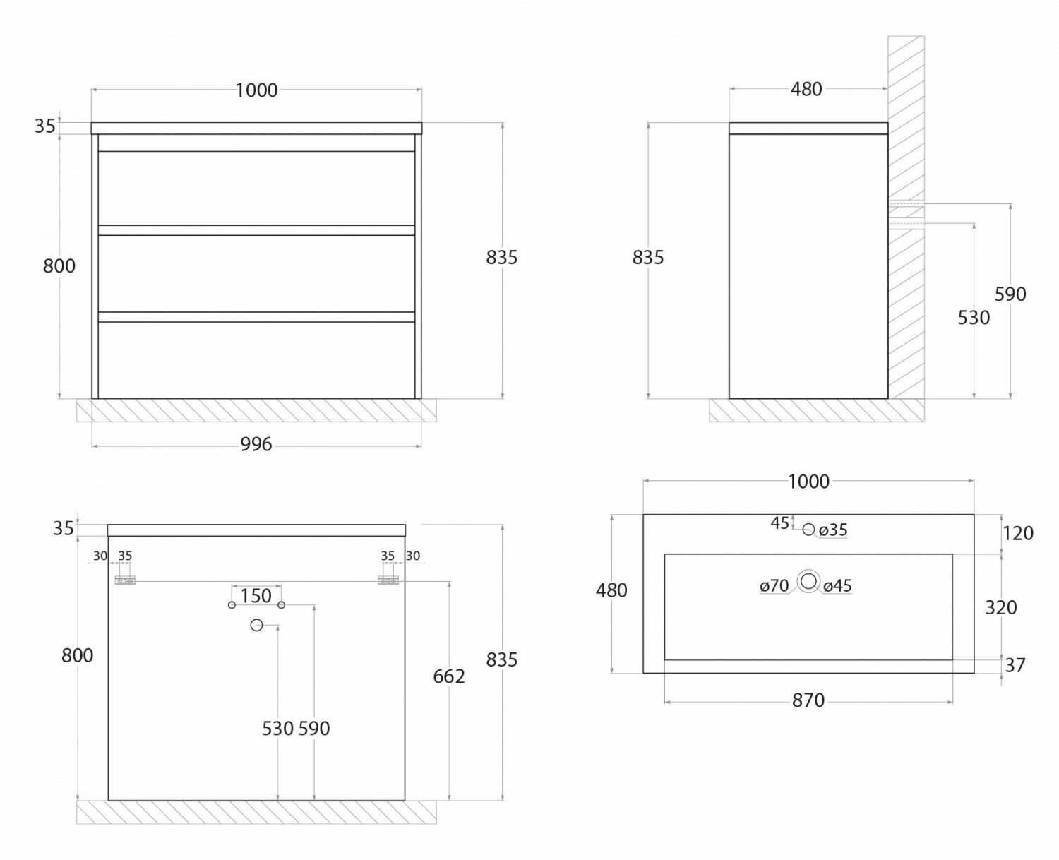 - Размеры (ШхВхГ): 996х800х480 мм.