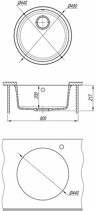 Мойка для монтажа под столешницу с круглой чашей в блок 60. Классическая форма мойки подойдет под любой дизайн кухни и сэкономит место рабочей поверхности. Просторная чаша позволяет мыть крупногабаритную посуду.
