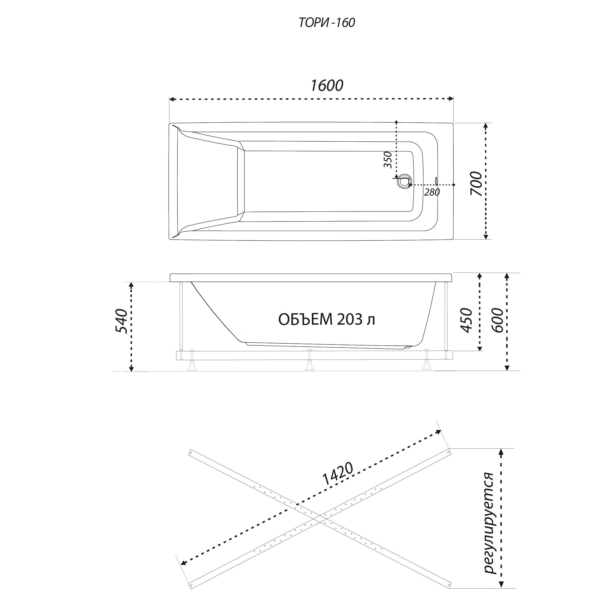 Акриловая ванна 1ACReal Тори 170x70 Щ0000042932
