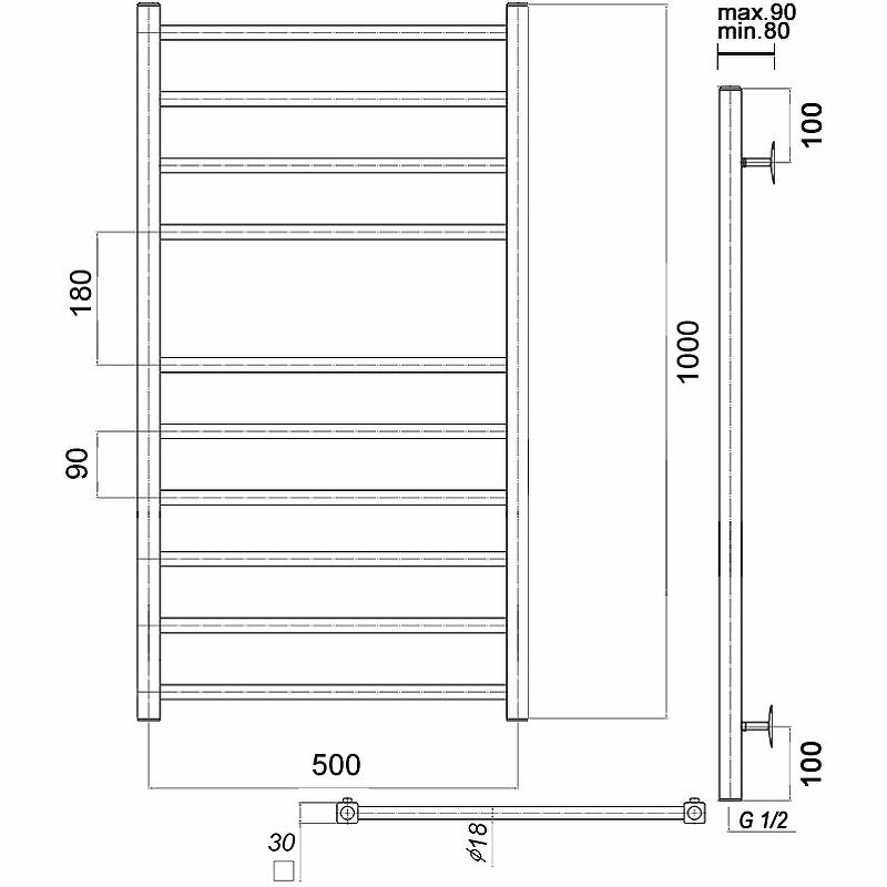 Полотенцесушитель водяной Domoterm Куба П10 50x80 хром Куба П10 500x1000