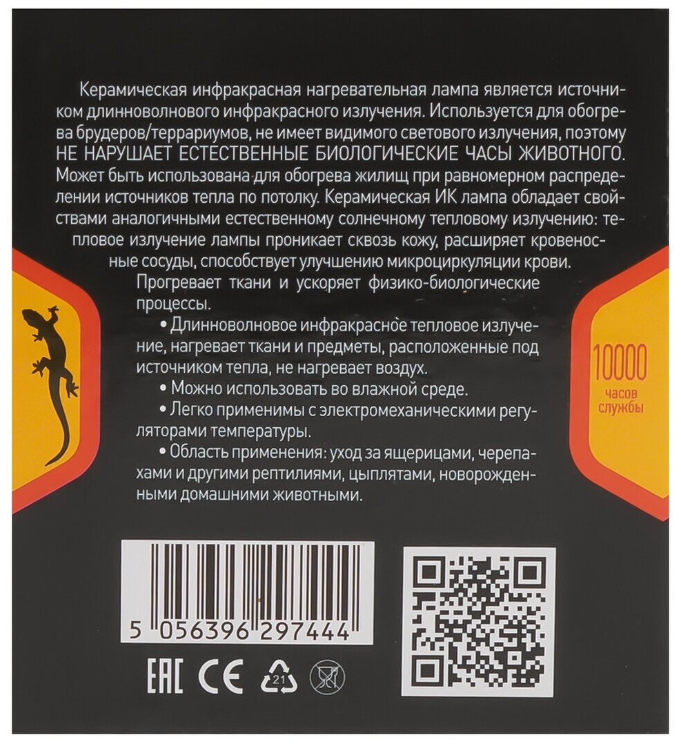 "**Лампа Эра Fito для террариумов с рептилиями** - инфракрасный керамический нагреватель - отличный источник дальнего инфракрасного излучения для брудера, рептилий. Основная функция - мощный тепловой эффект. Лампа может быть задимирована с помощью тиристорного димера с теплорегулятором.