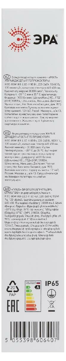 Прожектор светодиодный для растений ЭРА 50W 1310K Б0053082 Fito-80W-RB-Led-Y
